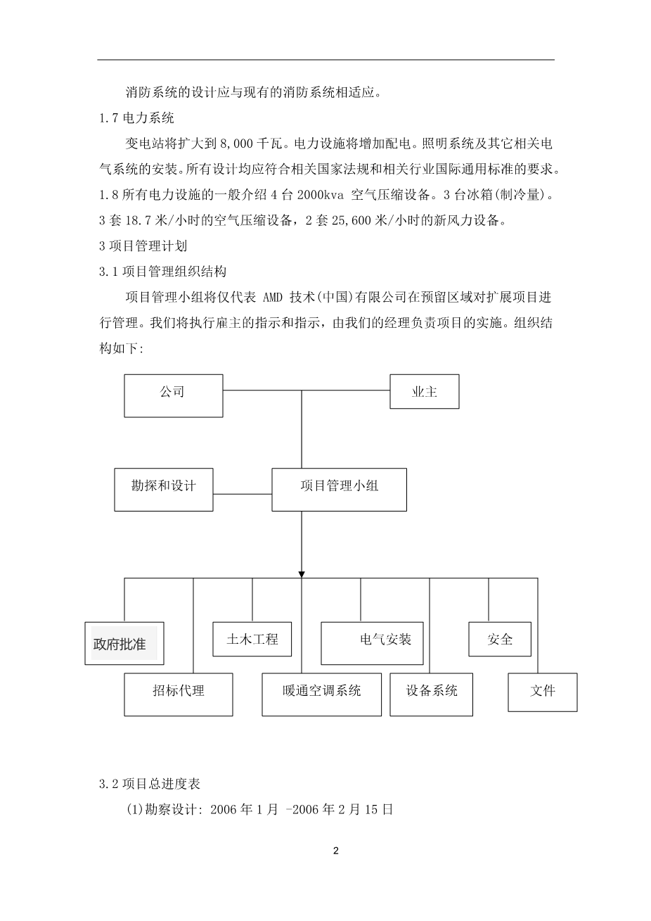 The project management team will carry out the management of the extended project in pre-reserved area of AMD technologies (China) Co. Ltd. on solely behalf of the company. We will carry out the employerrsquo;s directives and instructions with our manager being responsible for the project implementation. The organization structure is given below: