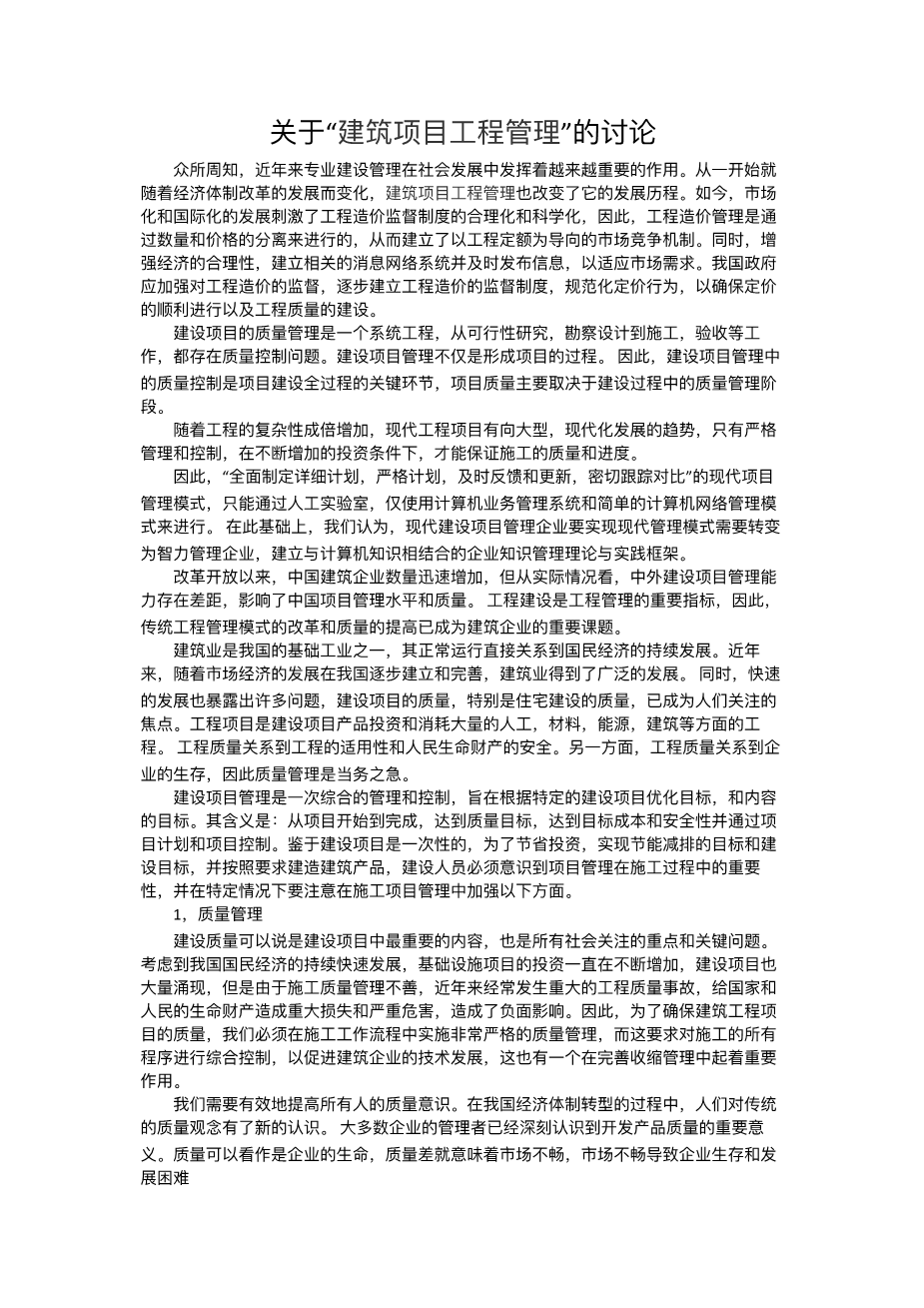 关于“建筑项目工程管理”的讨论外文翻译资料