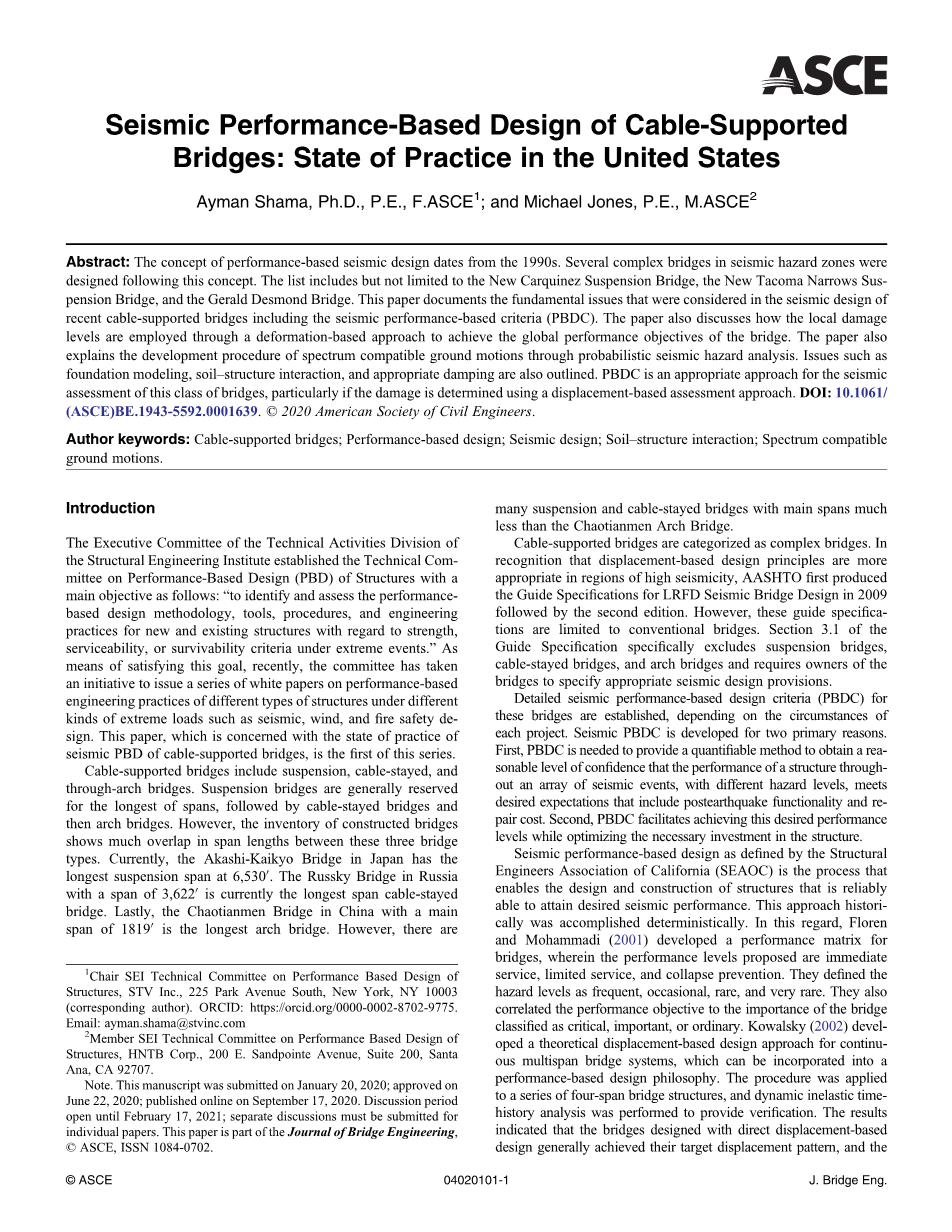 基于抗震性能的斜拉桥设计:美国的实践现状外文翻译资料
