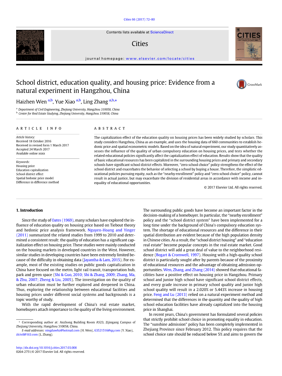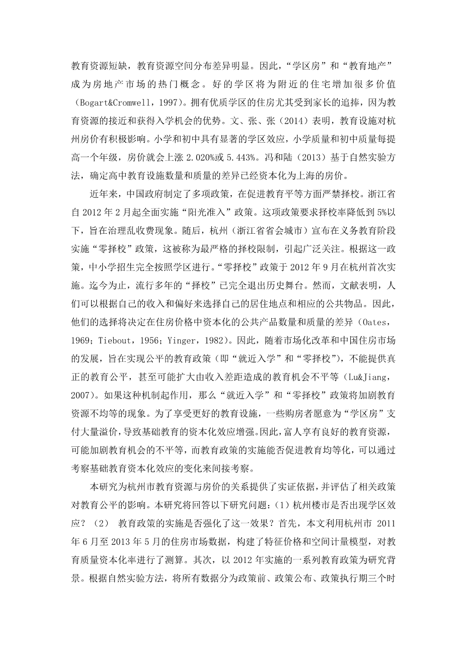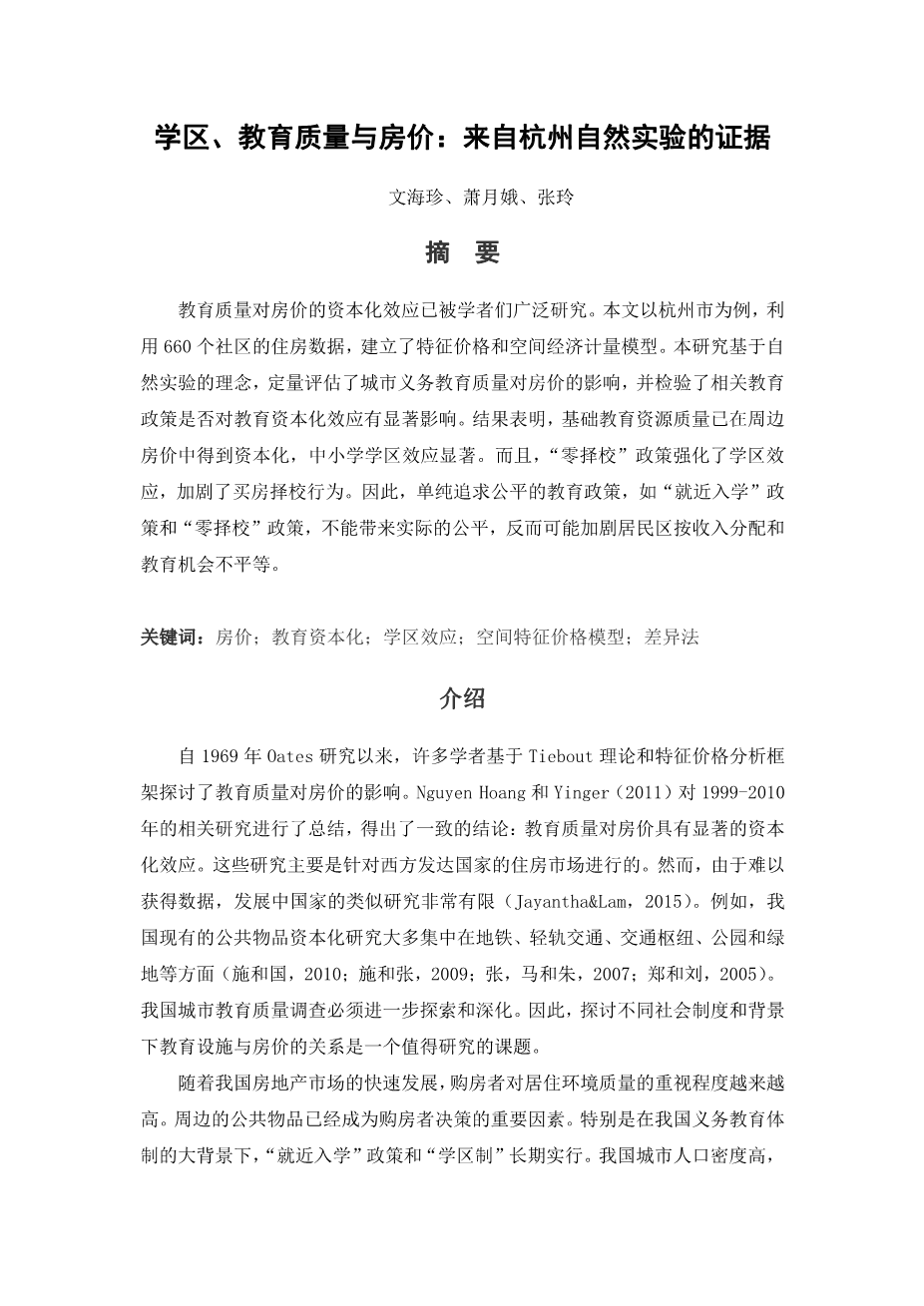 学区、教育质量与房价:来自杭州自然实验的证据外文翻译资料