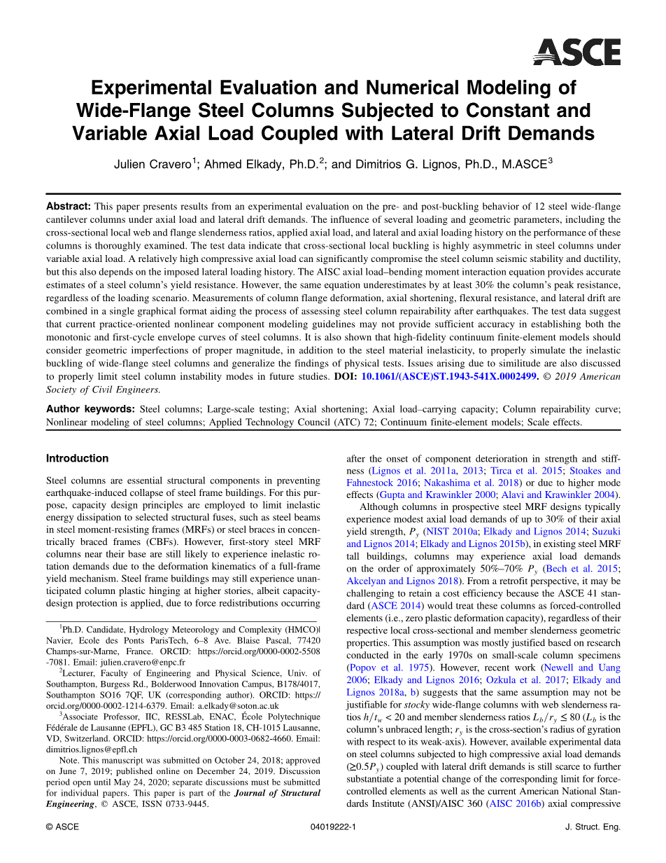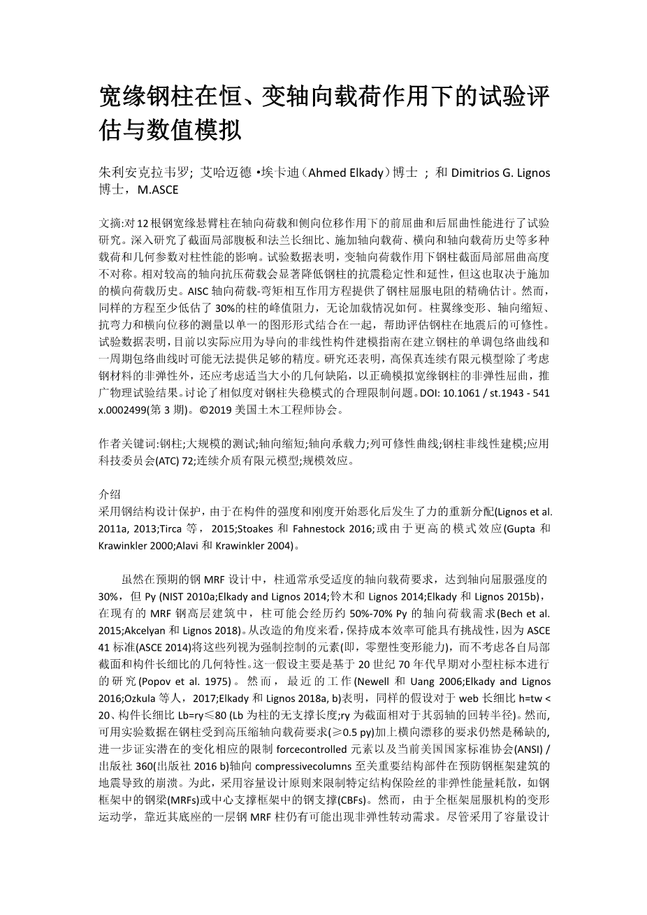 宽缘钢柱在恒、变轴向载荷作用下的试验评估与数值模拟外文翻译资料