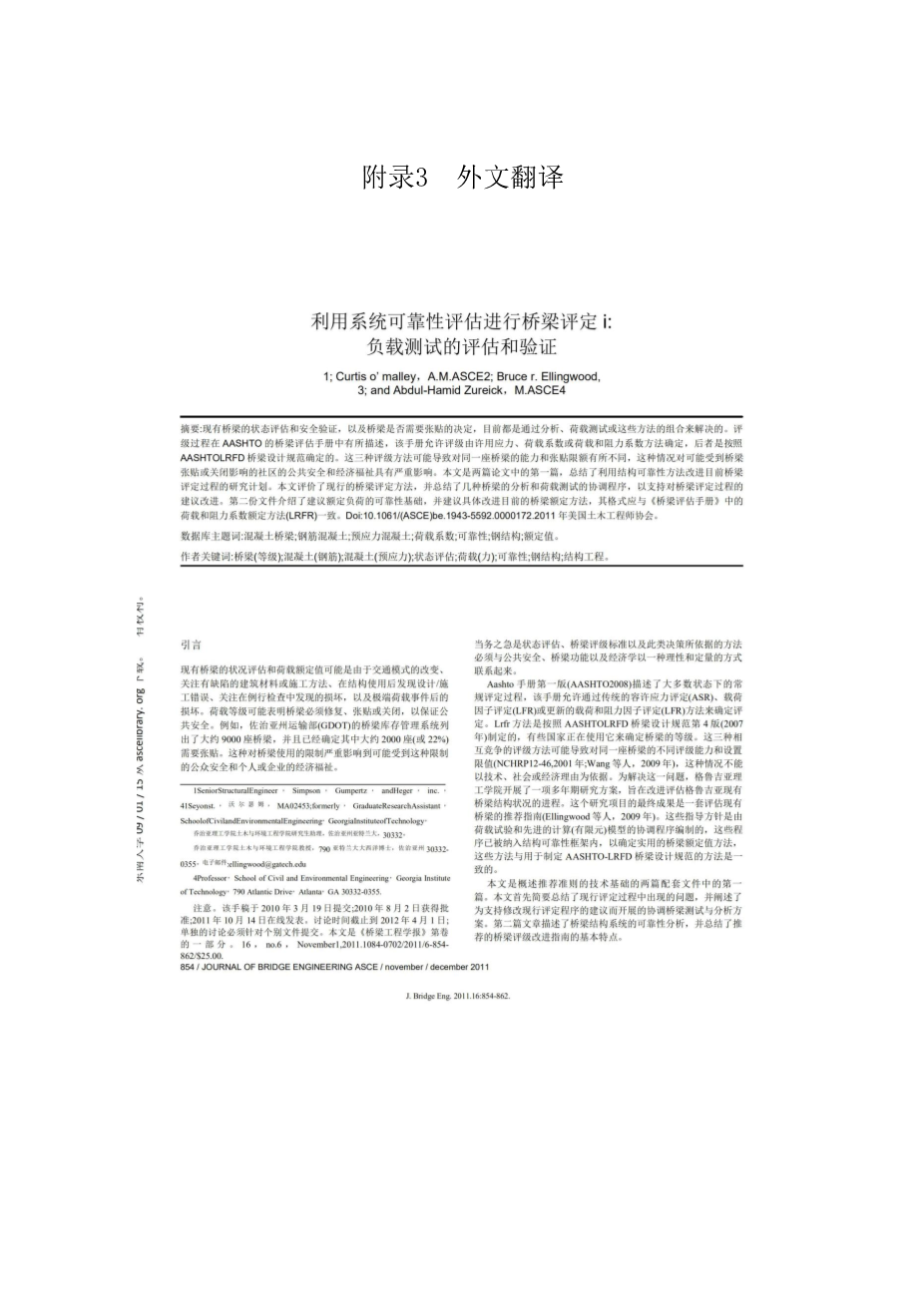 利用系统可靠性评估进行桥梁评定:负载测试的评估和验证外文翻译资料