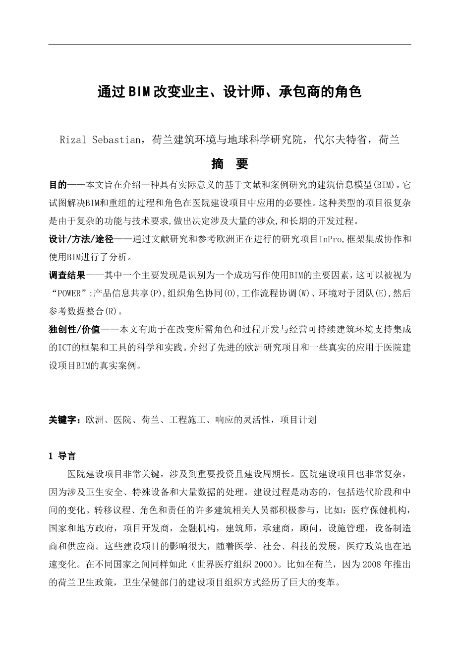 通过BIM改变业主、设计师、承包商的角色外文翻译资料