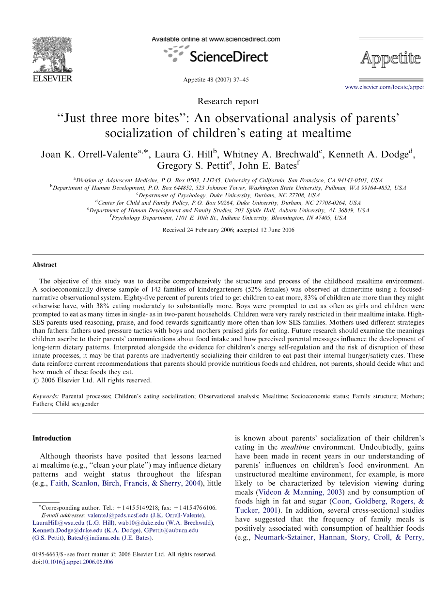 对家庭进餐时的环境的观察性研究很少见,仅使用了少量样本,并且几乎专门研究了“父母的提示/进食压力”与儿童的摄入量和/或体重之间的关系。这些研究几乎一致地报告了积极的联系(例如,Klesges等,1983),以及实验室观察结果(Drucker, Hammer, Agras,