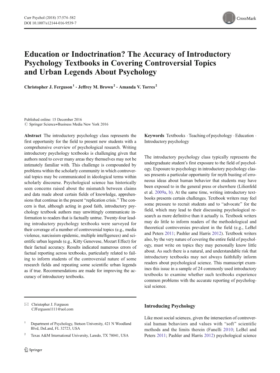 教育还是引导? ——漫谈心理学教科书有争议的话题外文翻译资料