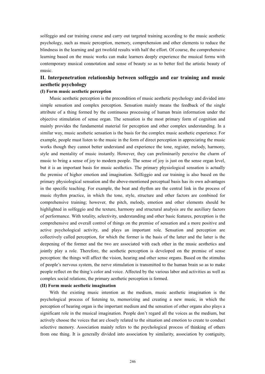 视唱练耳与耳的相互渗透研究训练与音乐审美心理美学 外文翻译资料