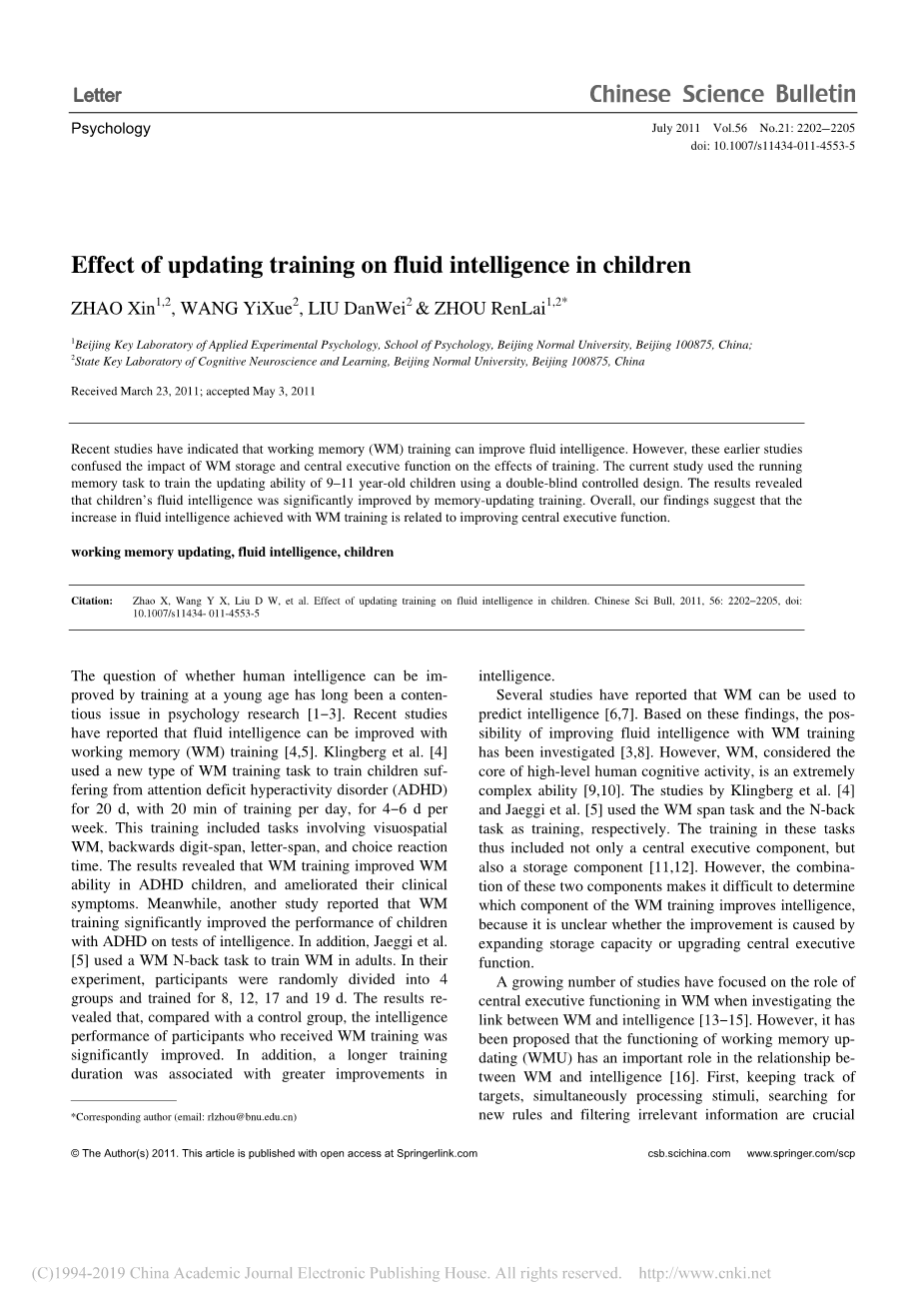 刷新功能训练对儿童流体智力的影响外文翻译资料