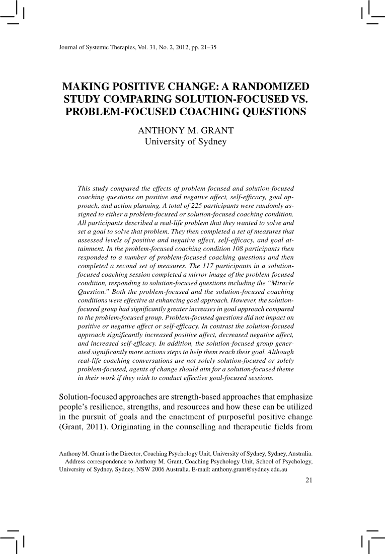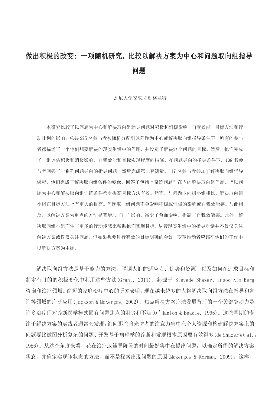 做出积极的改变:一项随机研究,比较以解决方案为中心和问题取向组指导问题外文翻译资料