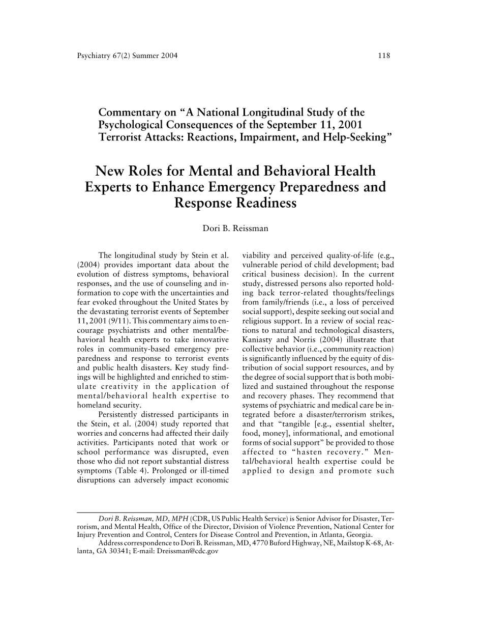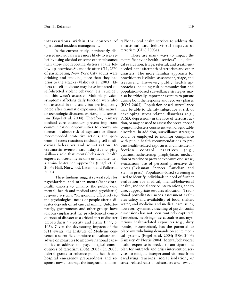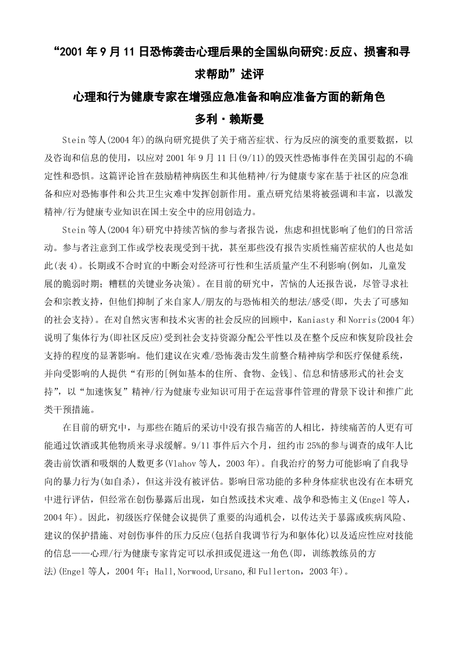 “2001年9月11日恐怖袭击心理后果的全国纵向研究:反应、损害和寻 求帮助”述评 心理和行为健康专家在增强应急准备和响应准备方面的新角色外文翻译资料