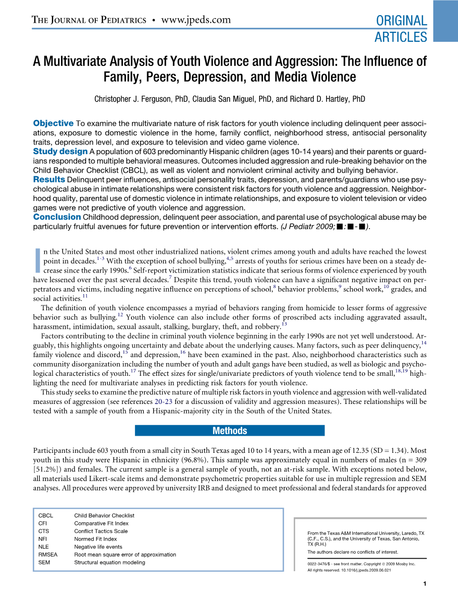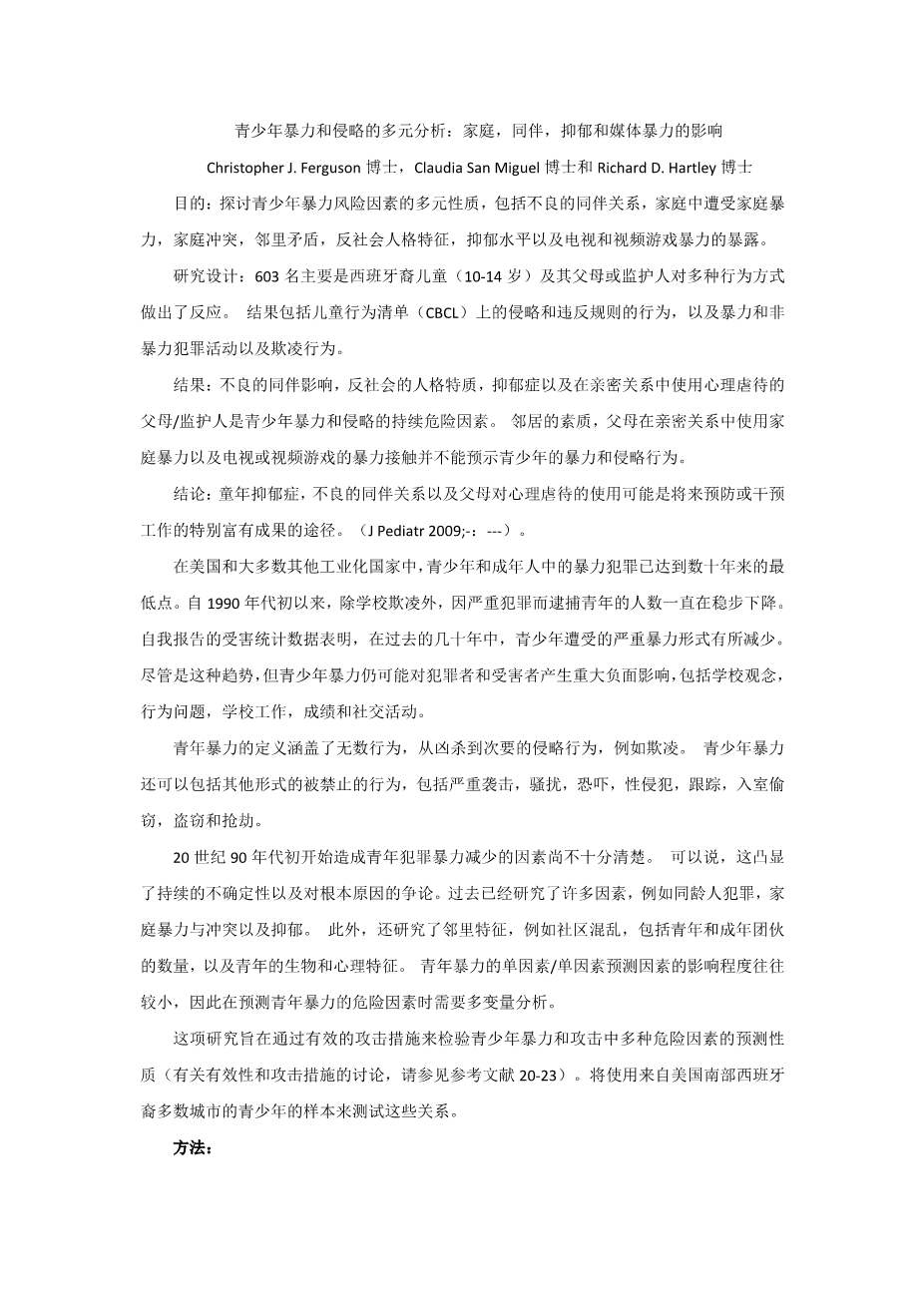 青少年暴力和侵略的多元分析:家庭,同伴,抑郁和媒体暴力的影响外文翻译资料
