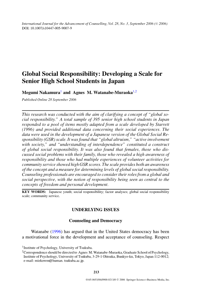 全球社会责任:为日本高中生制定量表外文翻译资料