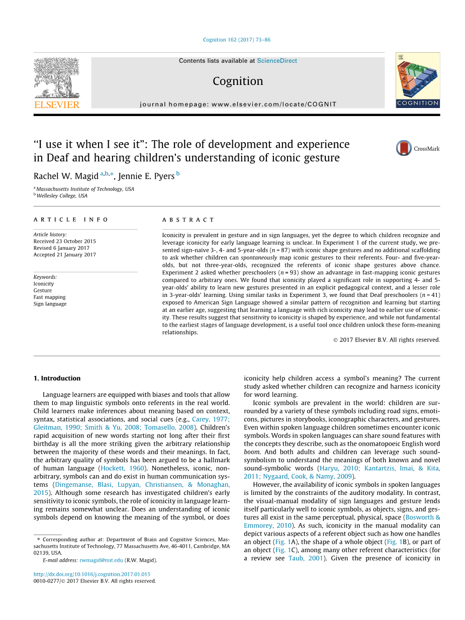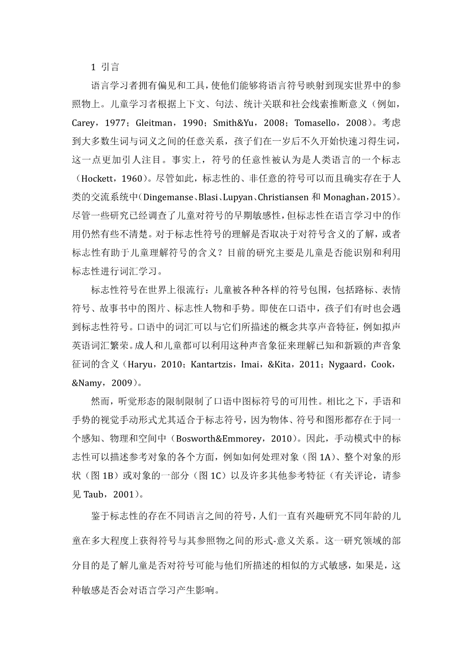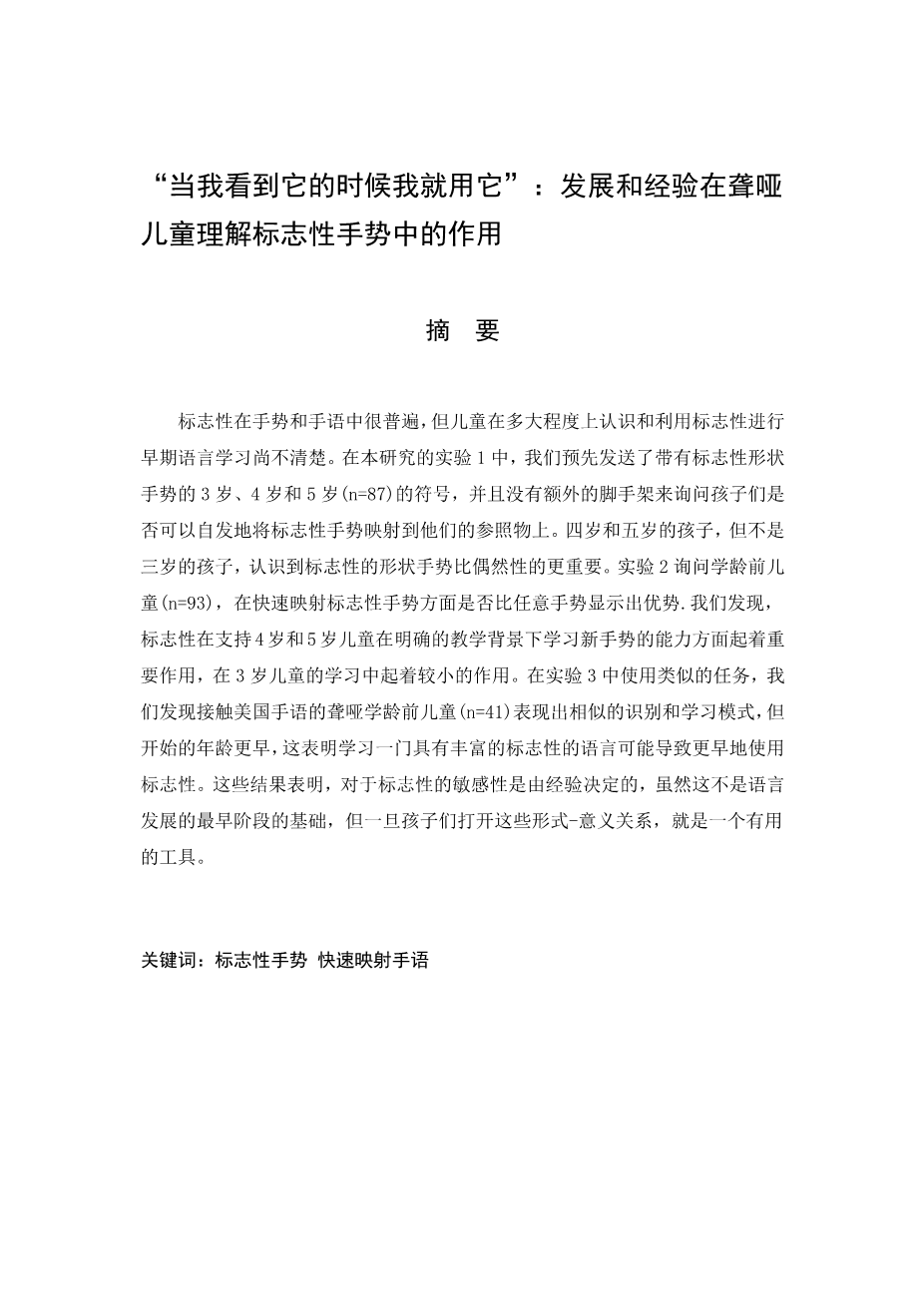 “当我看到它的时候我就用它”:发展和经验在聋哑 儿童理解标志性手势中的作用外文翻译资料