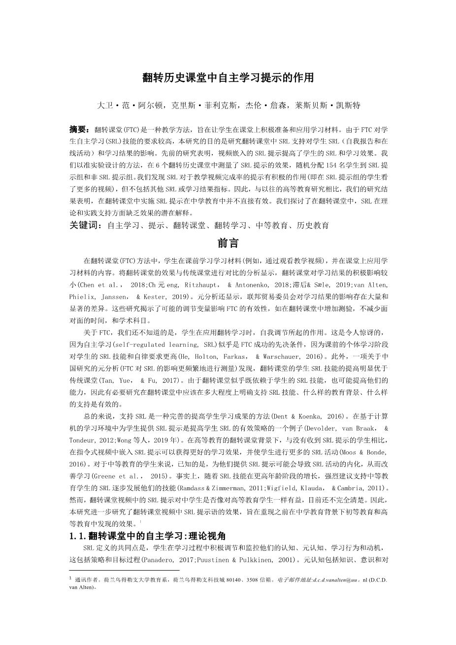 翻转历史课堂中自主学习提示的作用外文翻译资料