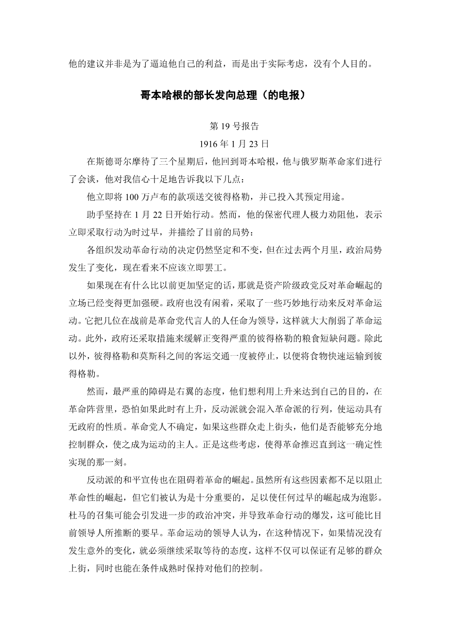 哥本哈根的部长发向总理(的电报)外文翻译资料