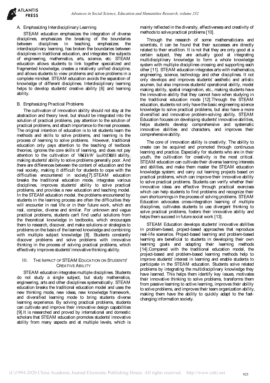 STEAM教育对提高学生创造性思维的影响外文翻译资料