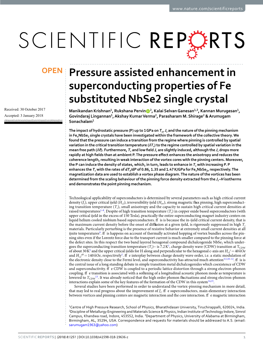 铁插层的NbSe2单晶在压力作用下的超导特性增强外文翻译资料