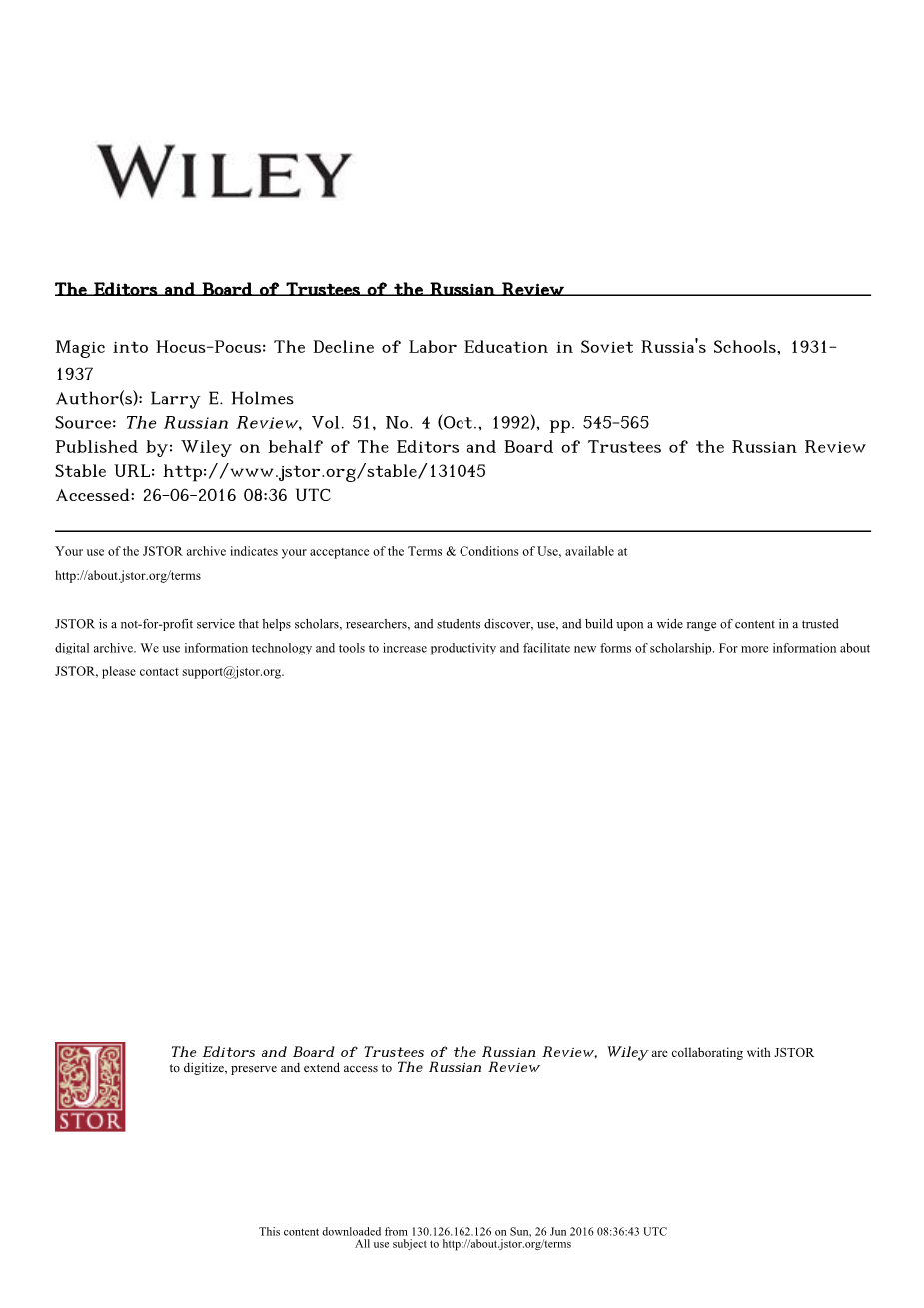 魔术进入发声:苏联学校劳动教育的下降,1931年-1937年外文翻译资料