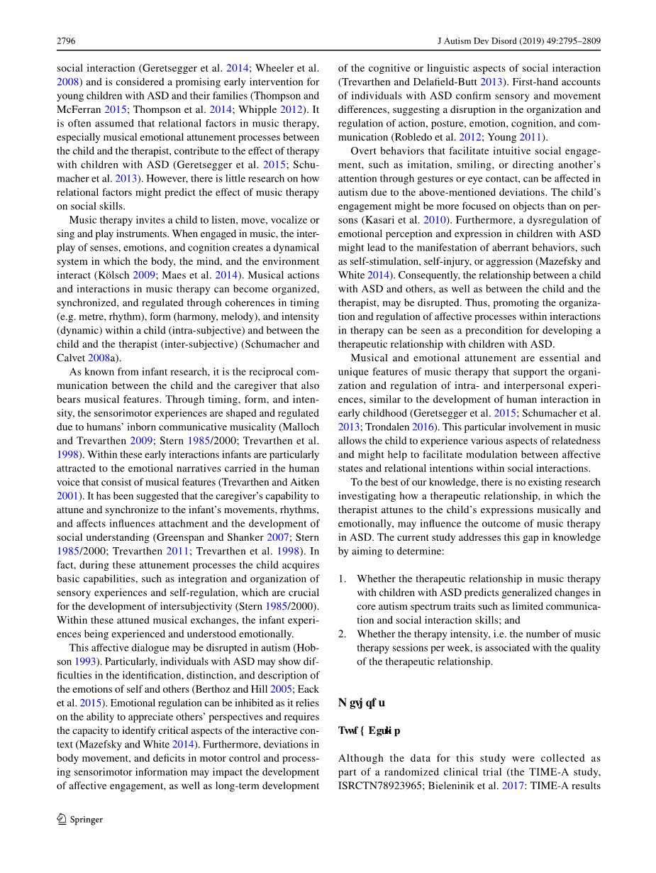 自闭症谱系障碍幼儿音乐治疗变化的预测因素:治疗关系外文翻译资料