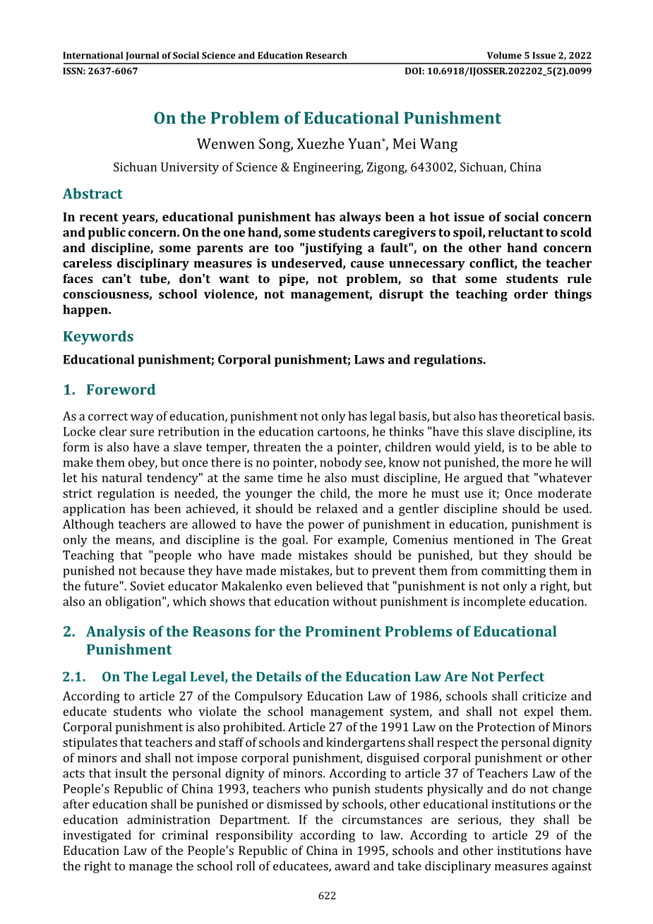 [3]Qin Huimin, DU Yingjie.The distinction between educational punishment andcorporal punishment
