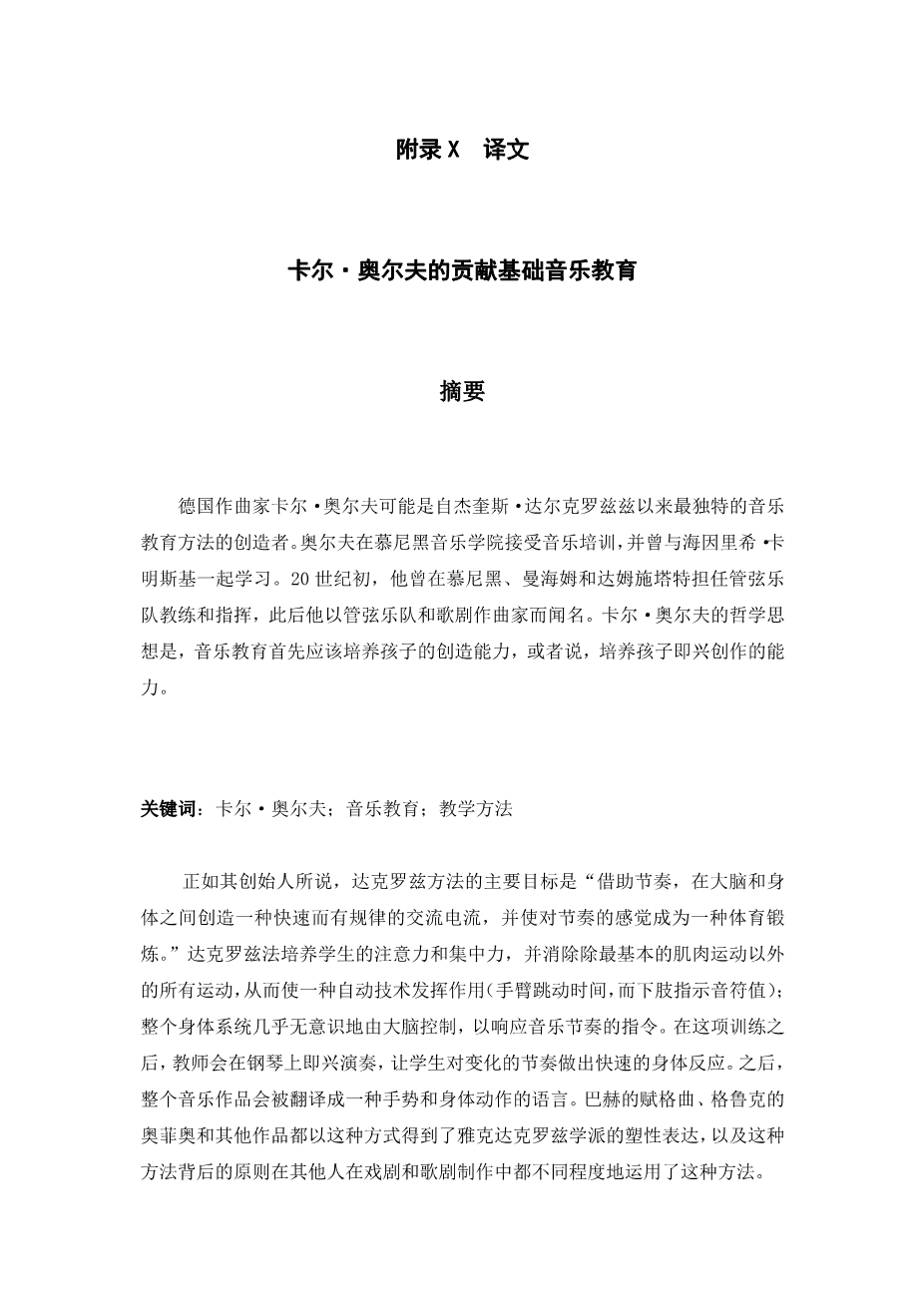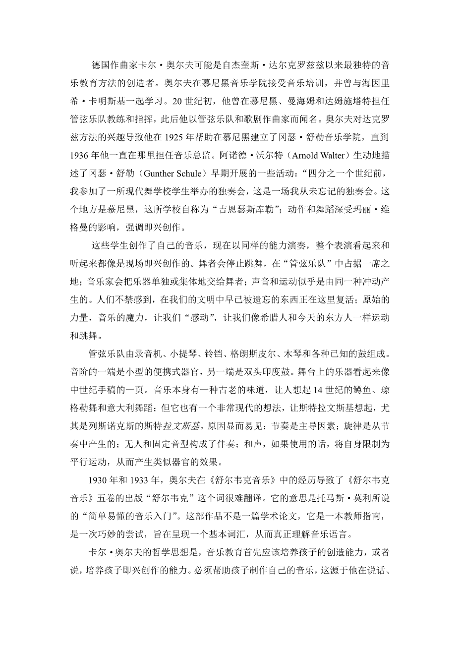 卡尔·奥尔夫的贡献基础音乐教育外文翻译资料