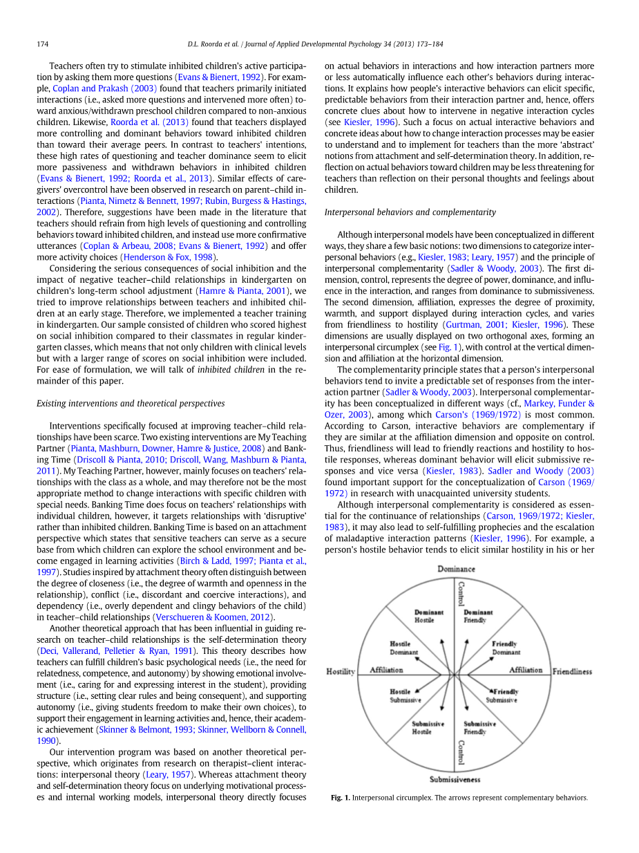 D.L.Roorda等人。/ 《应用发展心理学杂志》34 (2013) 173-184