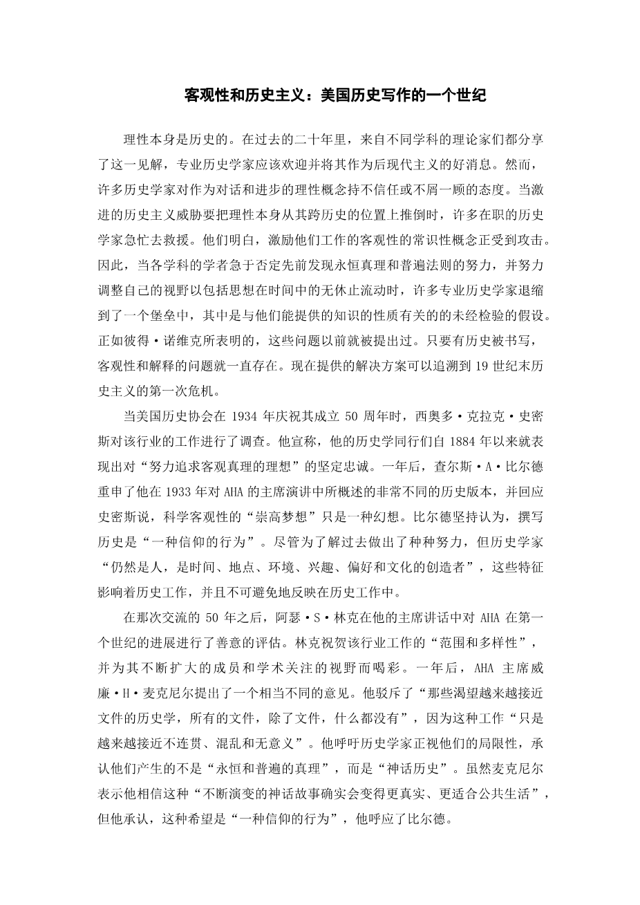 客观性和历史主义:美国历史写作的一个世纪外文翻译资料