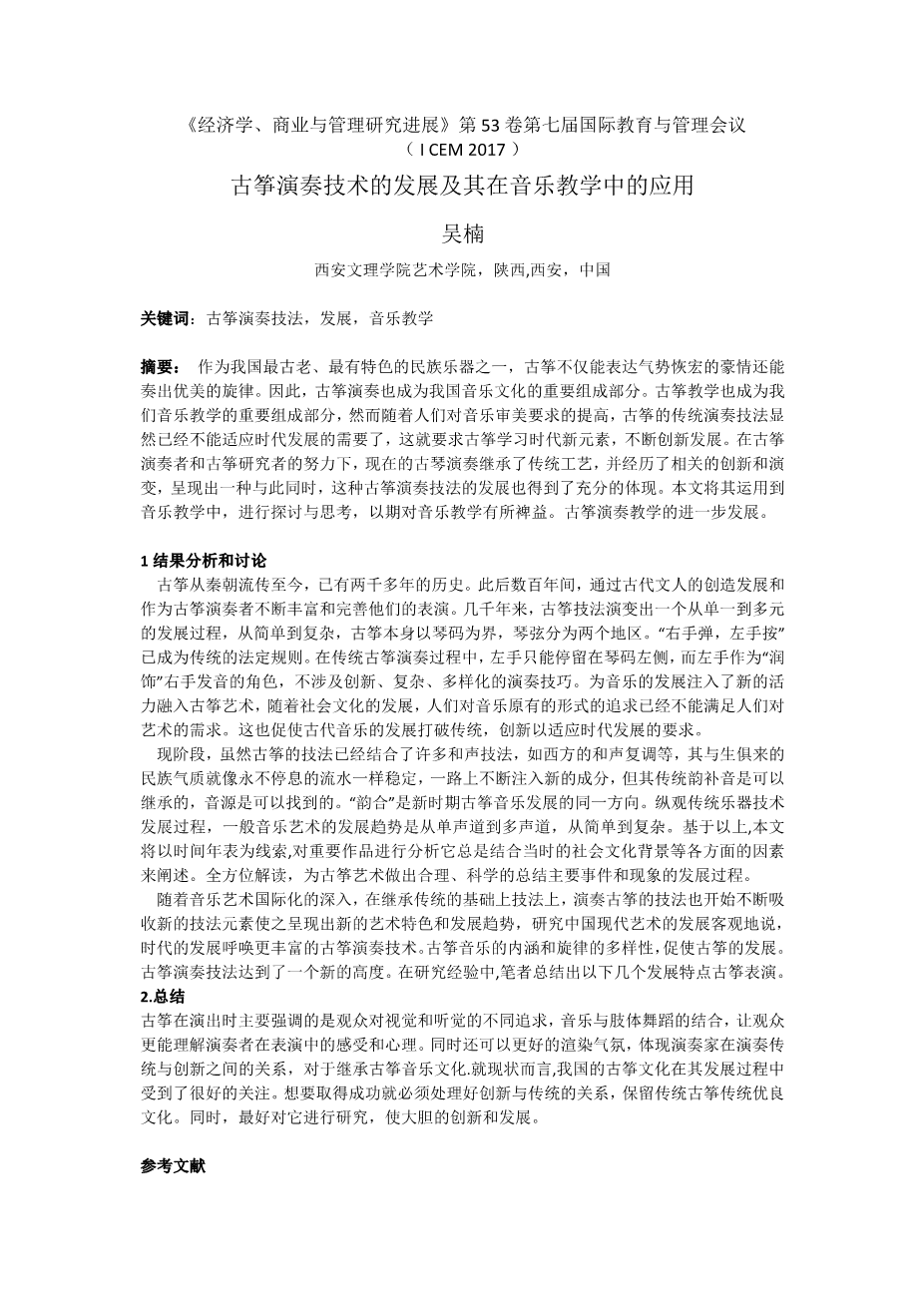 古筝演奏技术的发展及其在音乐教学中的应用外文翻译资料