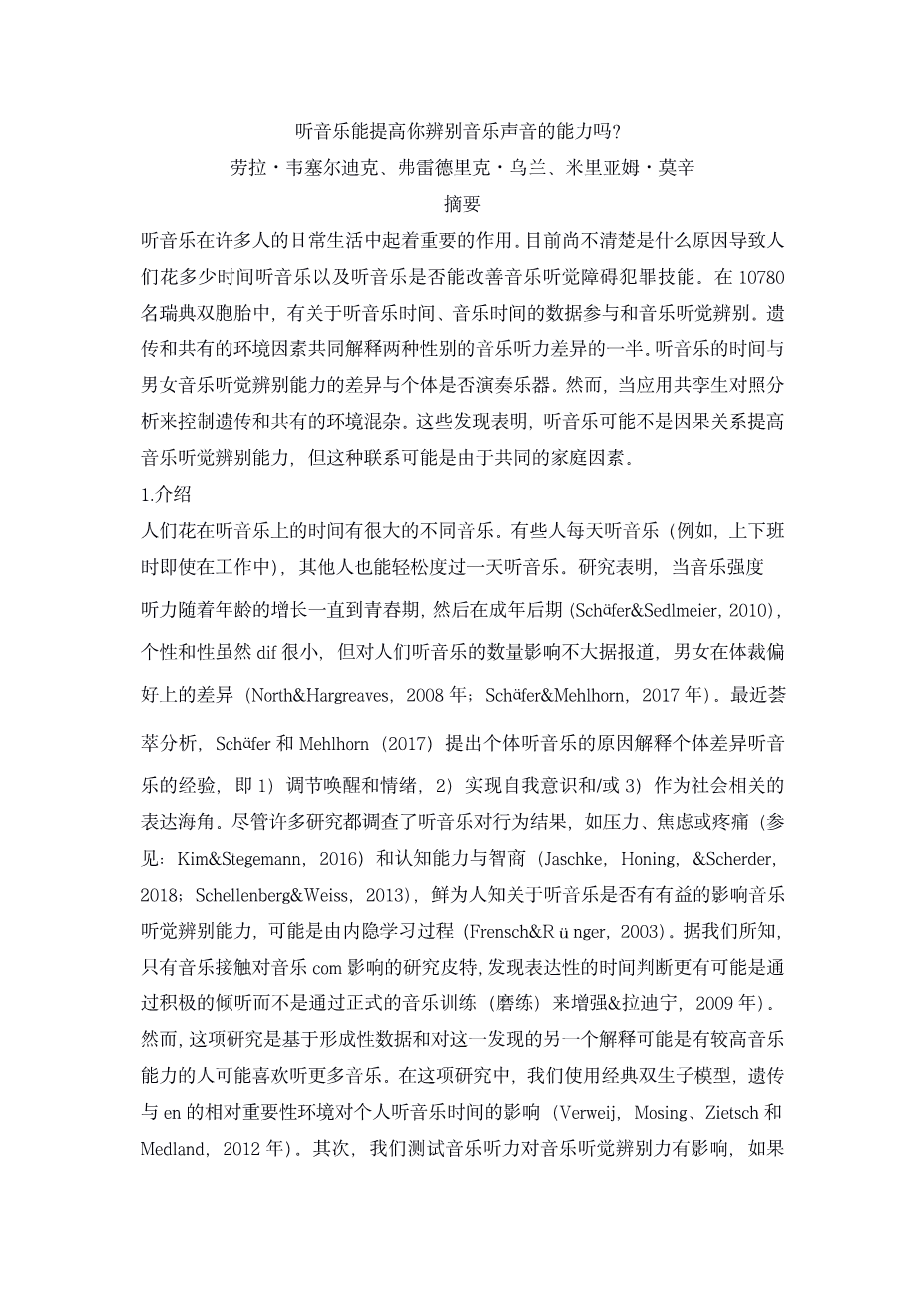 听音乐能提高你辨别音乐声音的能力吗?外文翻译资料