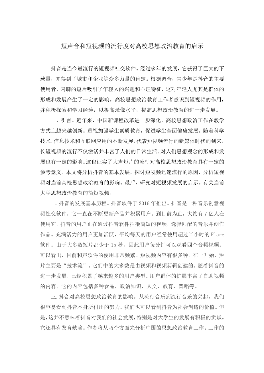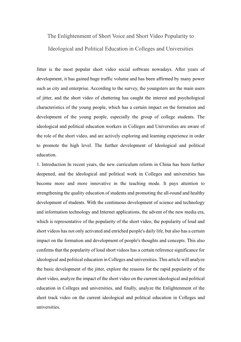 短声音和短视频的流行度对高校思想政治教育的启示外文翻译资料