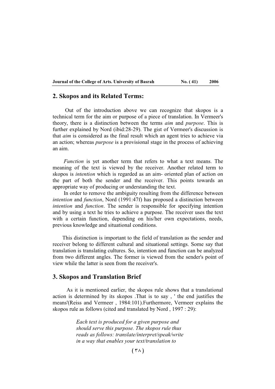 正如上述所说,目的论的原则说明翻译活动由翻译目的所决定。也就是说“翻译目的是根本,一切翻译方法皆为达到翻译目的。”(赖斯和维密尔,1984:101)维密尔通过以下的一段话,详细解释了目的原则。(节选翻译自诺德,1997:29):