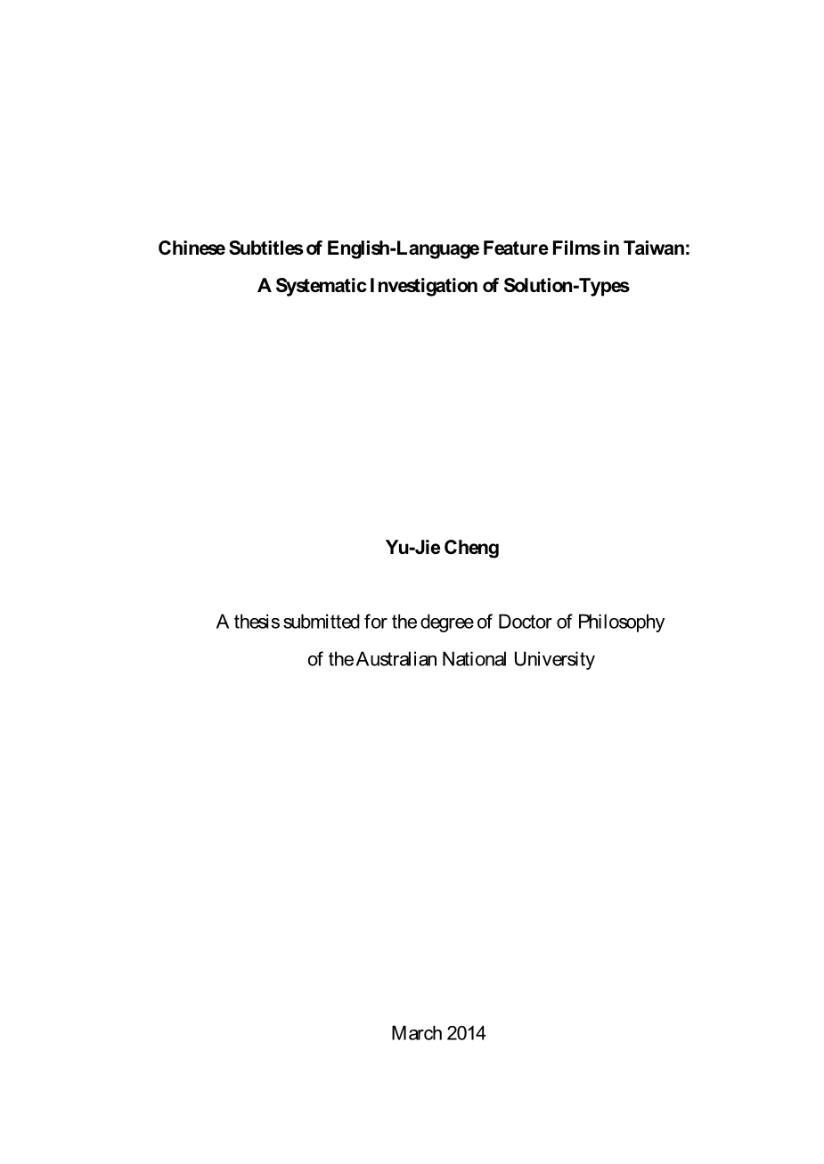 Chinese Subtitles of English-Language Feature Films in Taiwan: A Systematic Investigation of Solution-Types