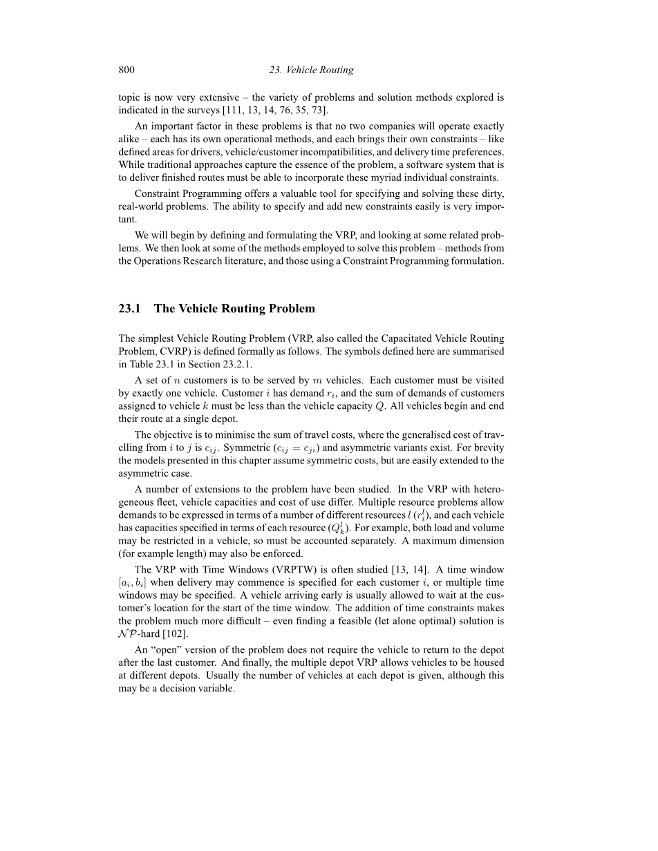 这些搜索方法将在23.5节中讨论。下面我们介绍两个有效的基于约束规划的VRP求解问题。