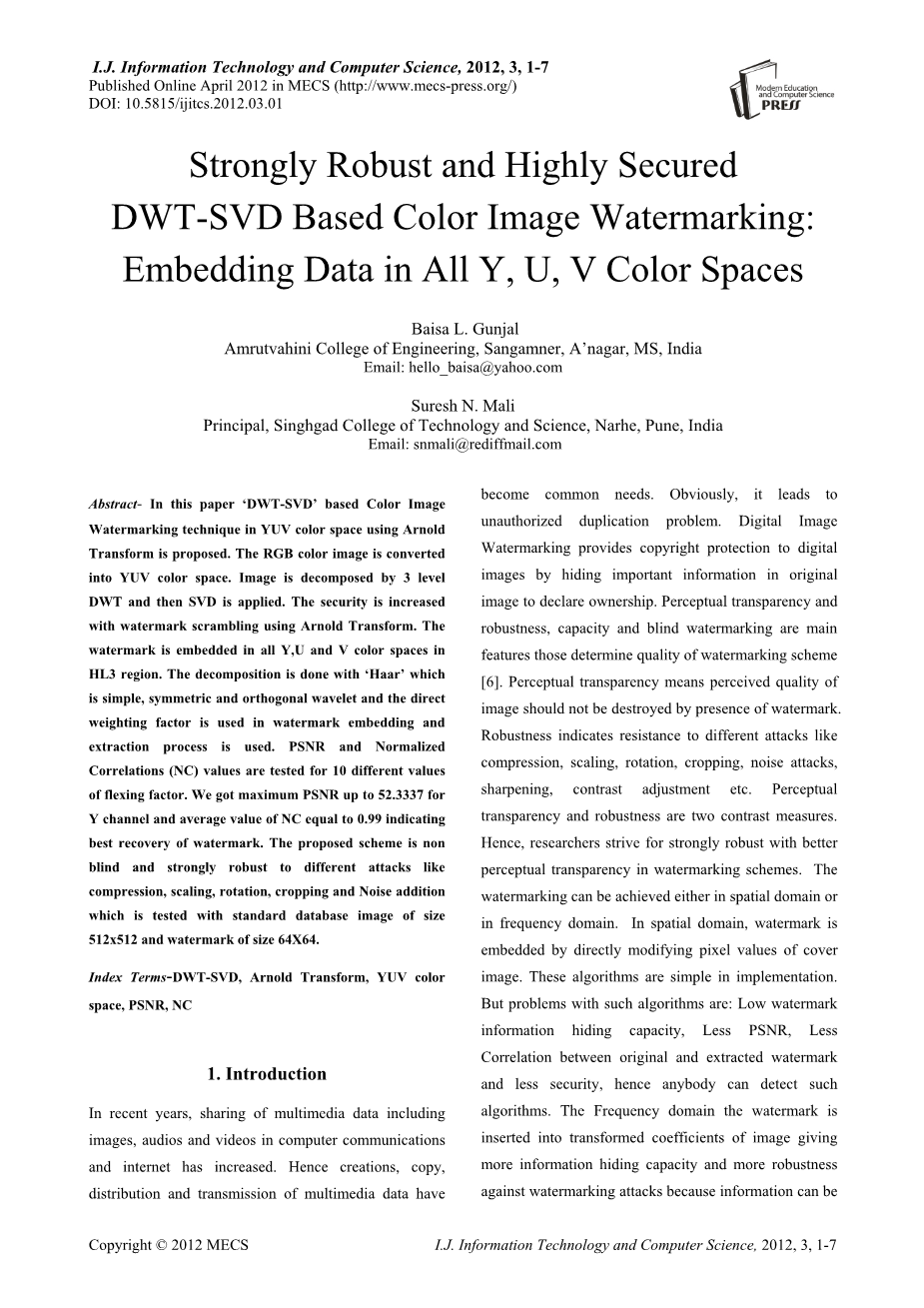 Published Online April 2012 in MECS (http://www.mecs-press.org/) DOI: 10.5815/ijitcs.2012.03.01