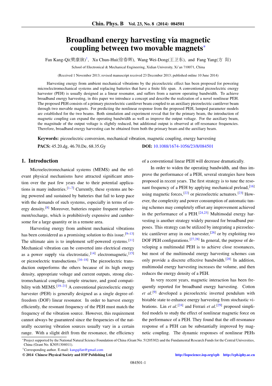 宽带能量收集通过磁性 两块活动磁铁之间的耦合外文翻译资料