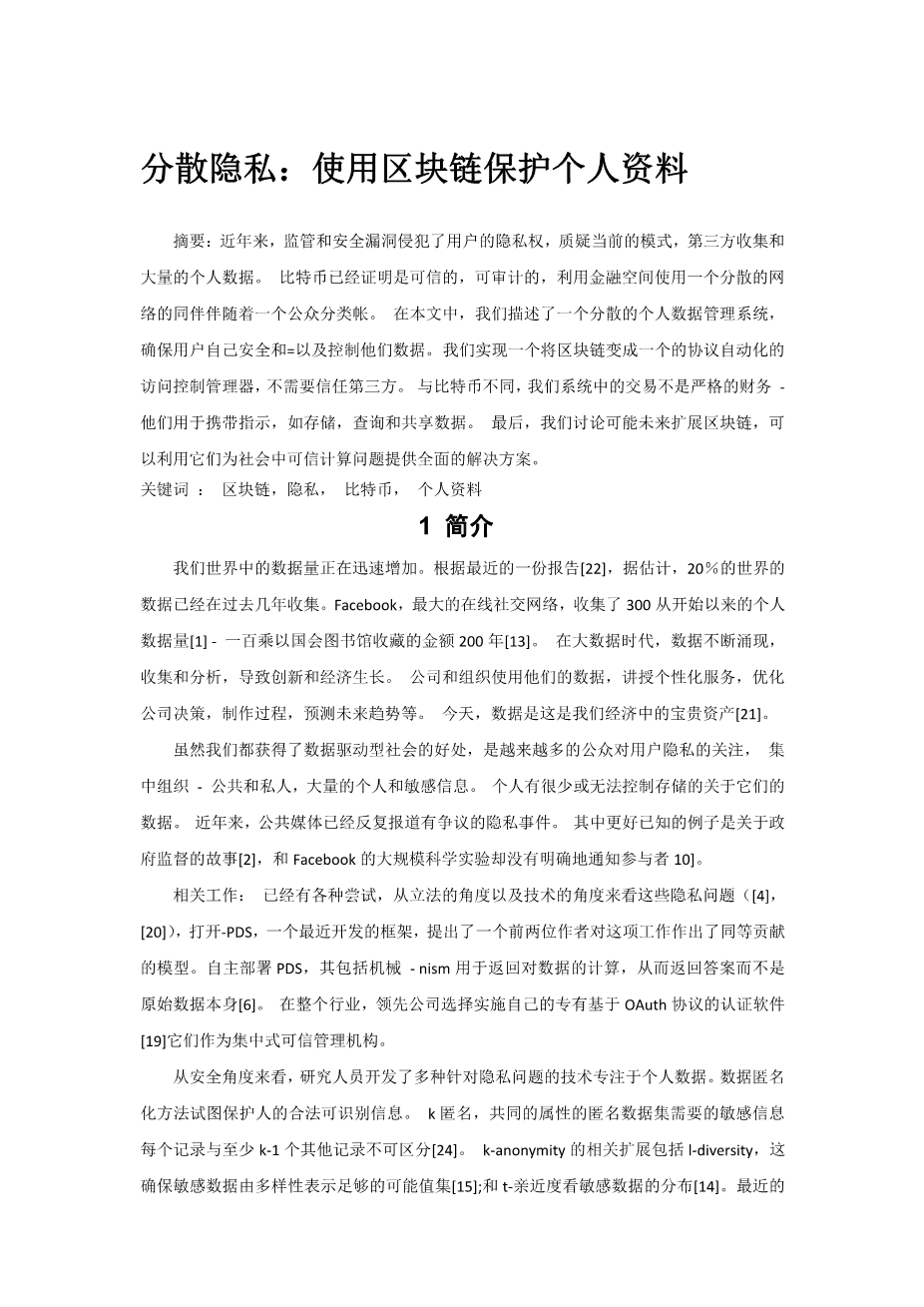 分散隐私:使用区块链保护个人资料外文翻译资料