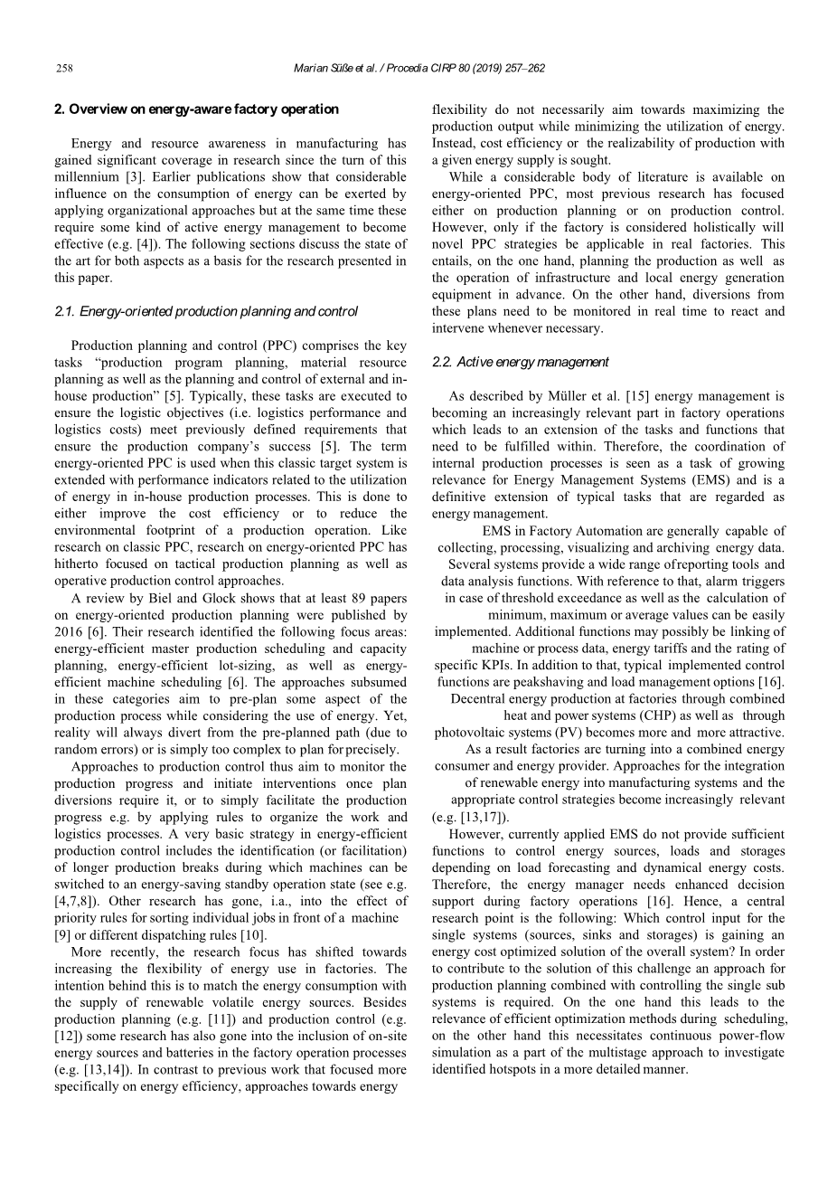 最近,研究重点已转向增加工厂能源使用的灵活性。这样做的目的是为了使能源消耗与可再生的不稳定能源的供应相匹配。除了生产计划(例如[11])和生产控制(例如[12])以外,一些研究还涉及将现场能源和电池纳入工厂运营过程中(例如[13,14])。与以往更具体地侧重于能源效率的工作不同,实现能源灵活性的方法不一定是在最大限度地提高产量的同时尽量减少能源的利用。相反,相反,工厂追求的是在给定能源供应下的成本效率或生产的可实现性。