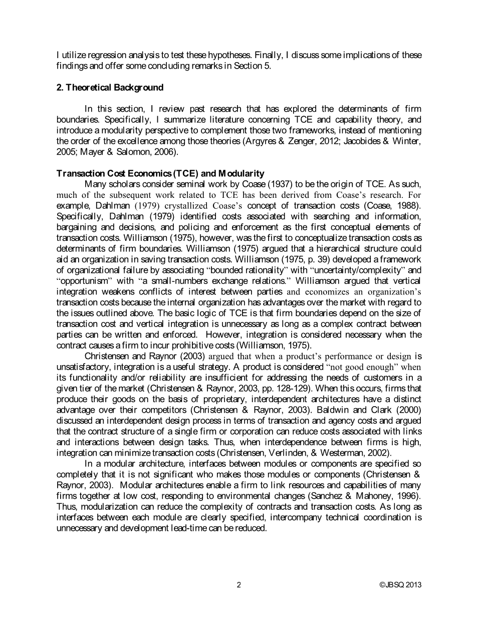 在这部分,我回顾了过去的研究,这些研究已经探讨了影响企业边界的决定性因素。具体来说,我总结了关于TCE和能力理论的相关文献,并引入模块化的角度来补充这两个框架,而不是介绍那些理论中的卓越的秩序。