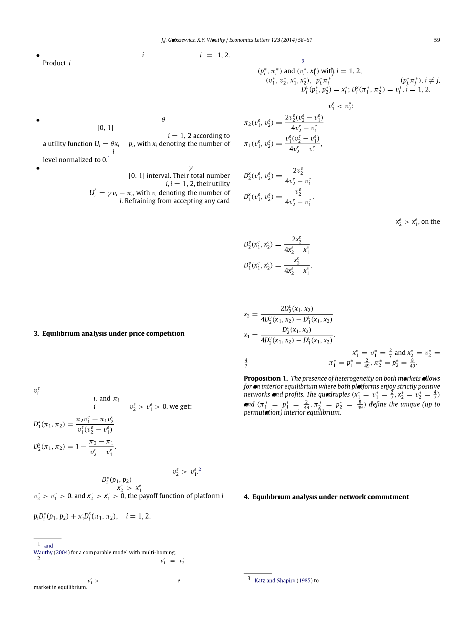 在我们目前的设置中,我们通过考虑一组条件来形式化这个想法,即链接网络大小的四倍对应四倍的价格。通过规范消费者的偏好,我们可以联想到任何网络规模配置x2gt; x1和v2gt;v1 ,一套相应的方程涉及的价格水平应同时实现这些规模处于平衡状态。在形式上,我们有: