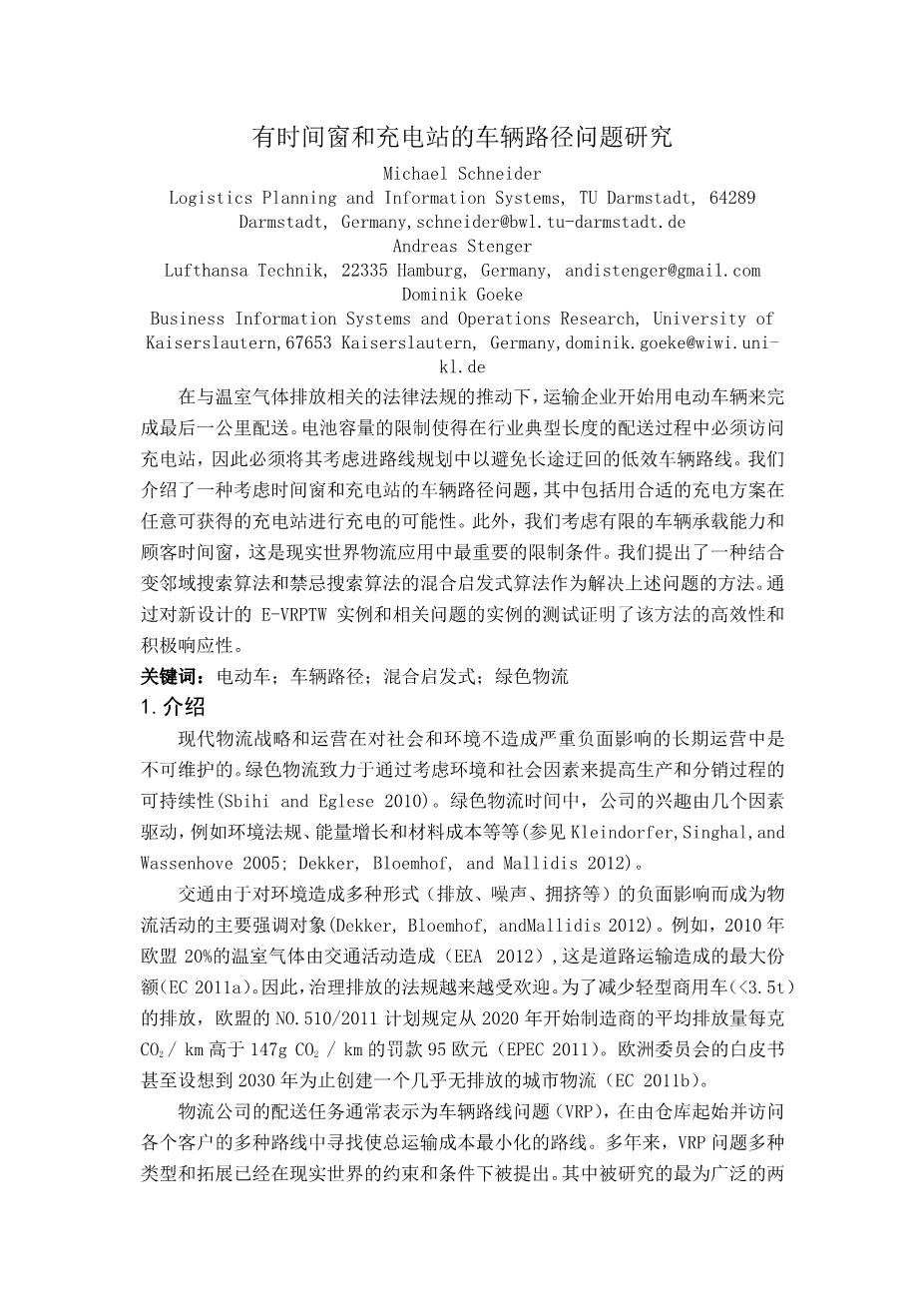 有时间窗和充电站的车辆路径问题研究外文翻译资料