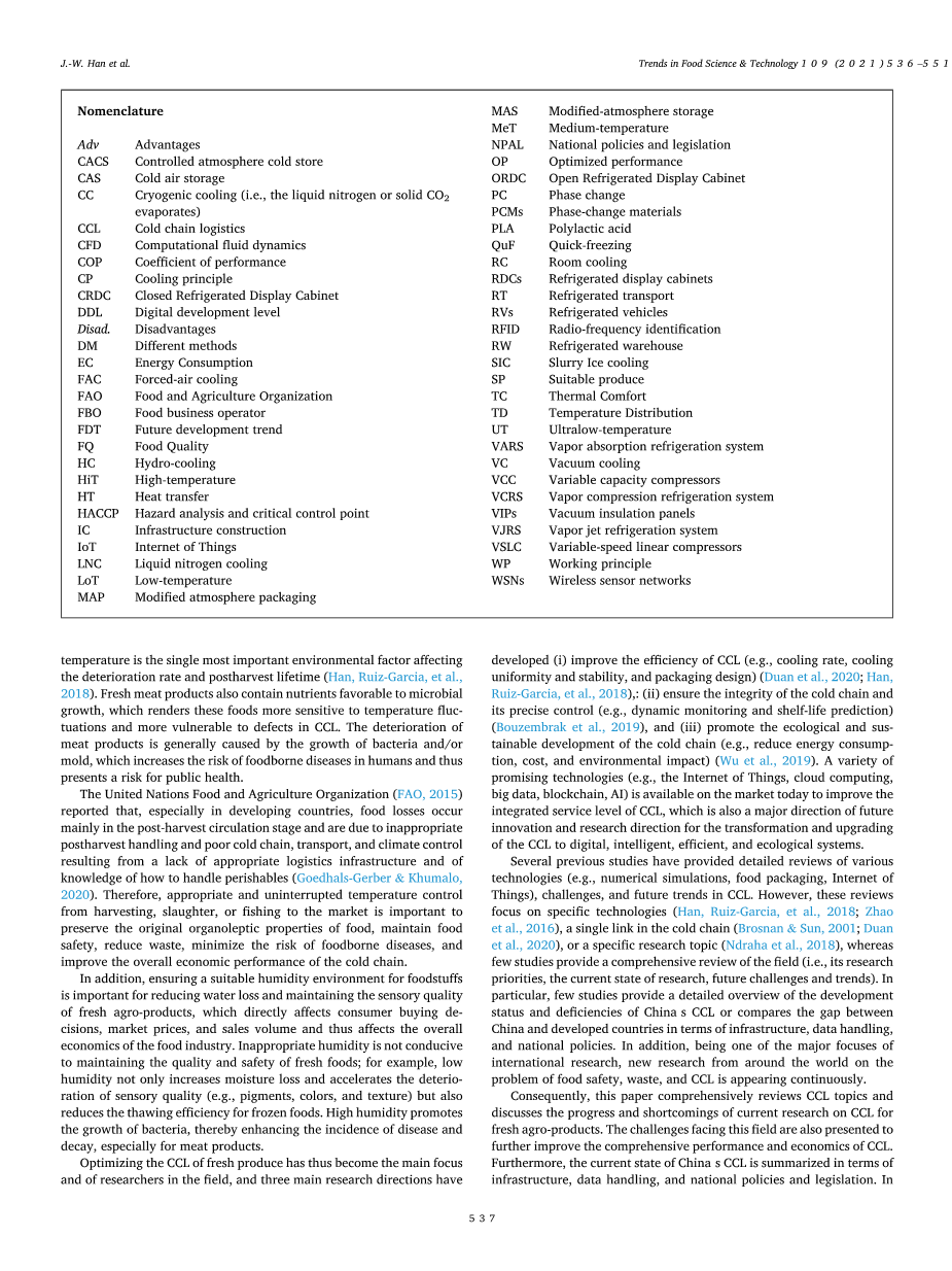 生鲜农产品冷链物流综合评述:现状、挑战与未来趋势外文翻译资料