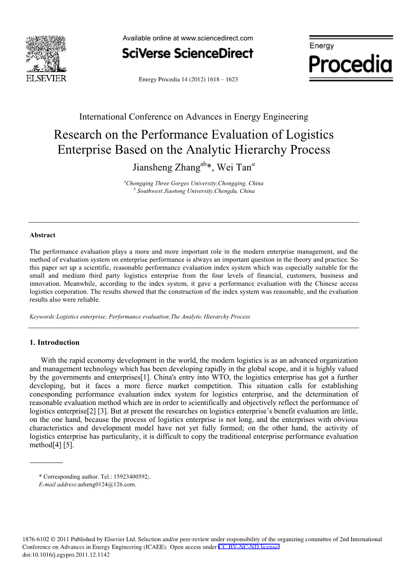基于层次分析法的物流企业绩效评价研究外文翻译资料