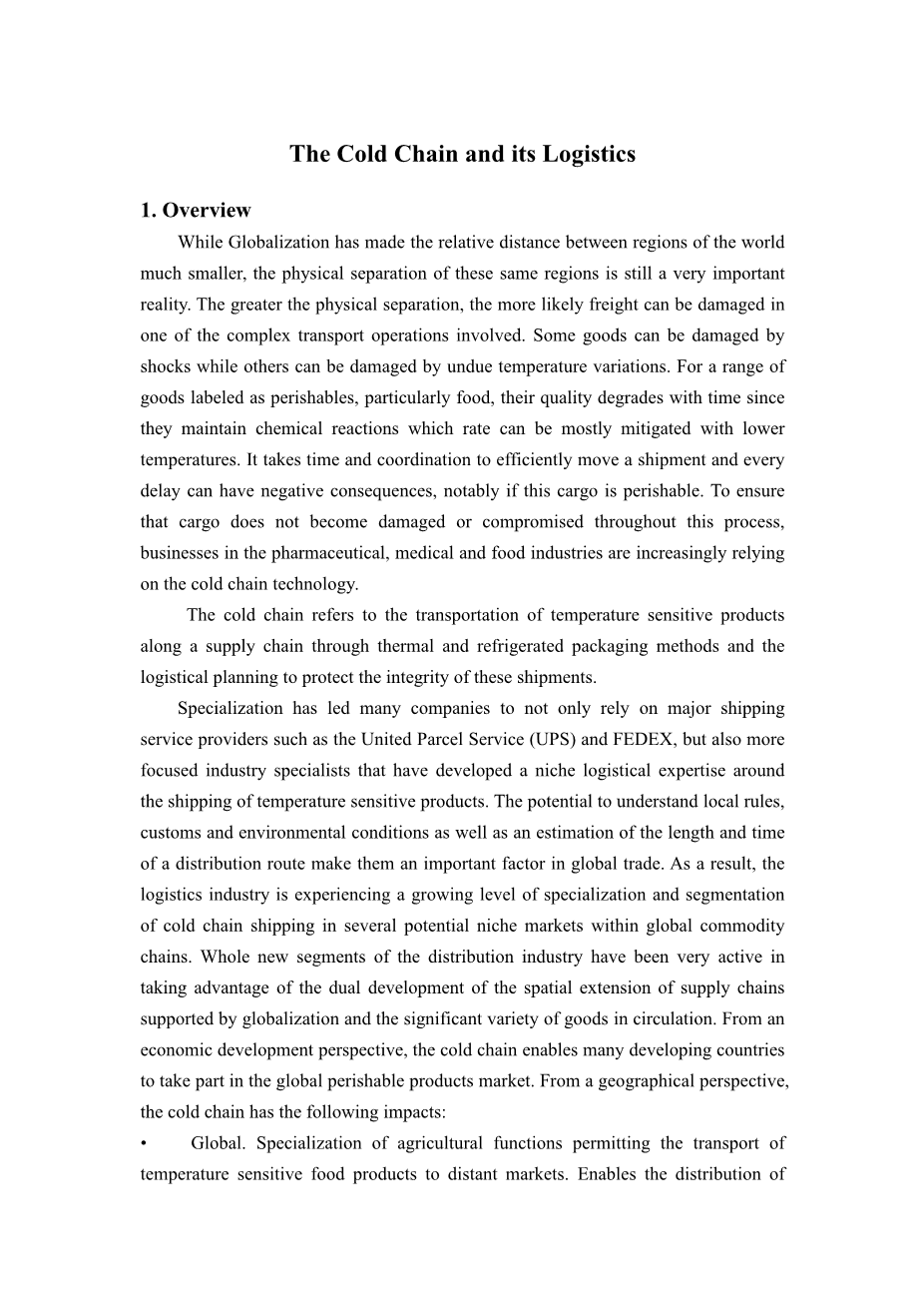 冷链及其物流外文翻译资料