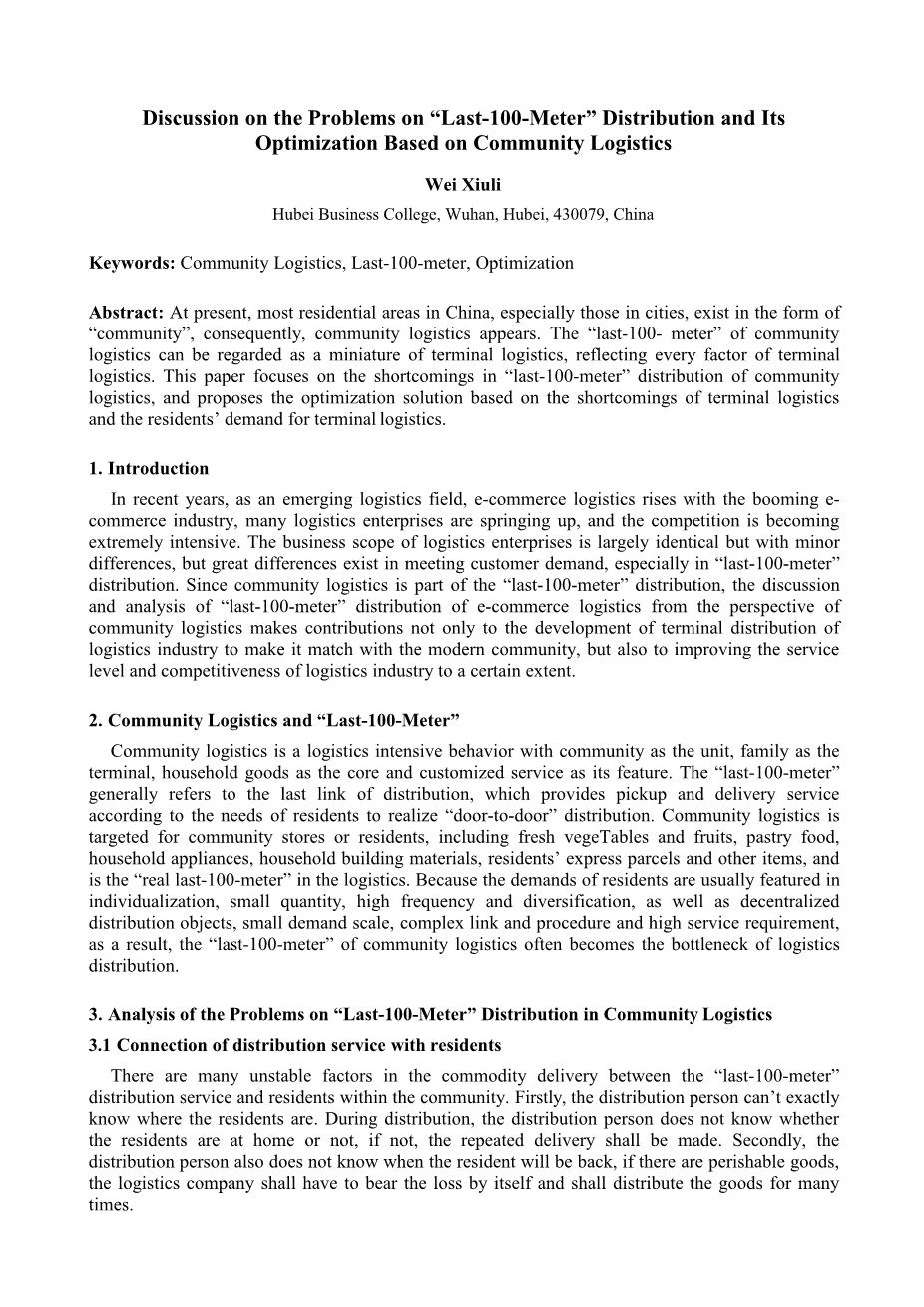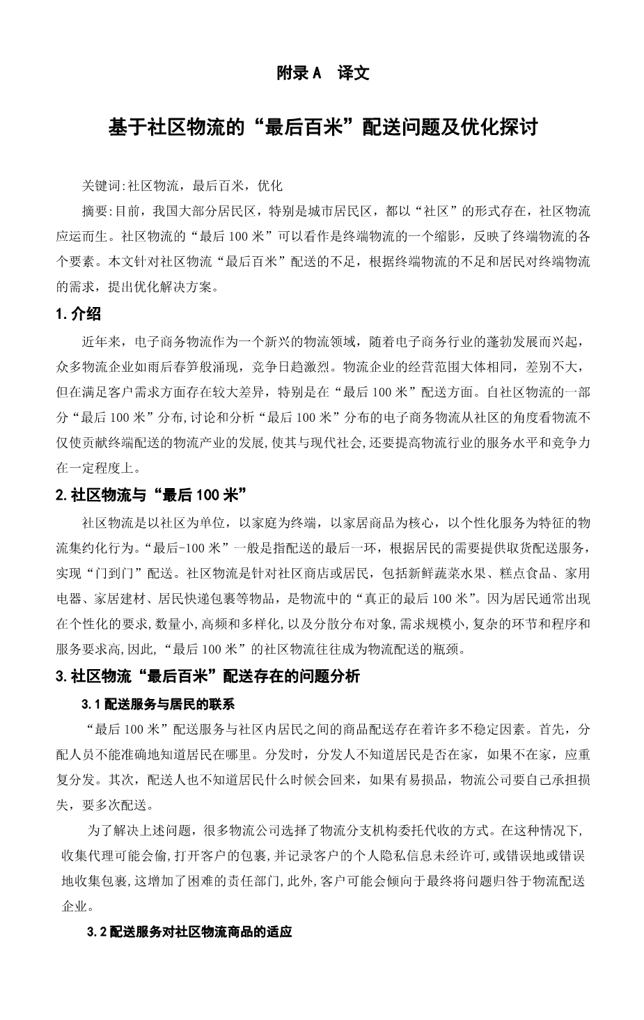 基于社区物流的“最后百米”配送问题及优化探讨外文翻译资料