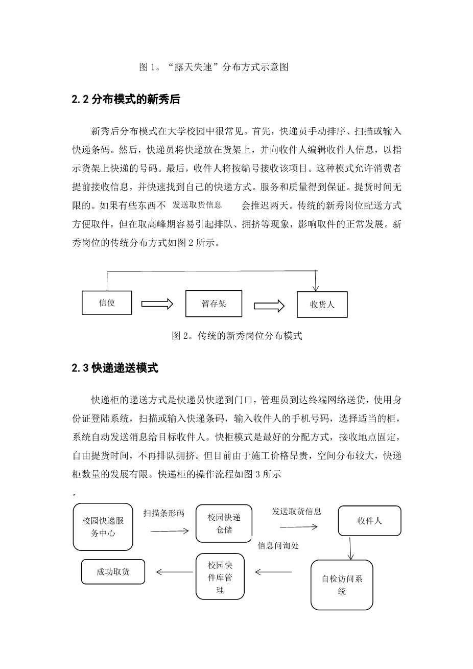 In order to save costs, most campus express companies often do not have fixed stores. Most of them transport express by mobile express delivery truck, which shortens the time of picking up the items. For college teachers and students, their leisure time is usually after class or after work. This time is usually shorter and is not equal to the time of distribution. Teachers and students find it difficult to pick up the express, and miss the time of picking up the express, which results in the delay of distribution time. On the one hand, this time inequality affects the quality of express delivery, teachers and students satisfaction with express delivery. on the other hand, it also affects the receipt and delivery volume of teachers and students and express companies.