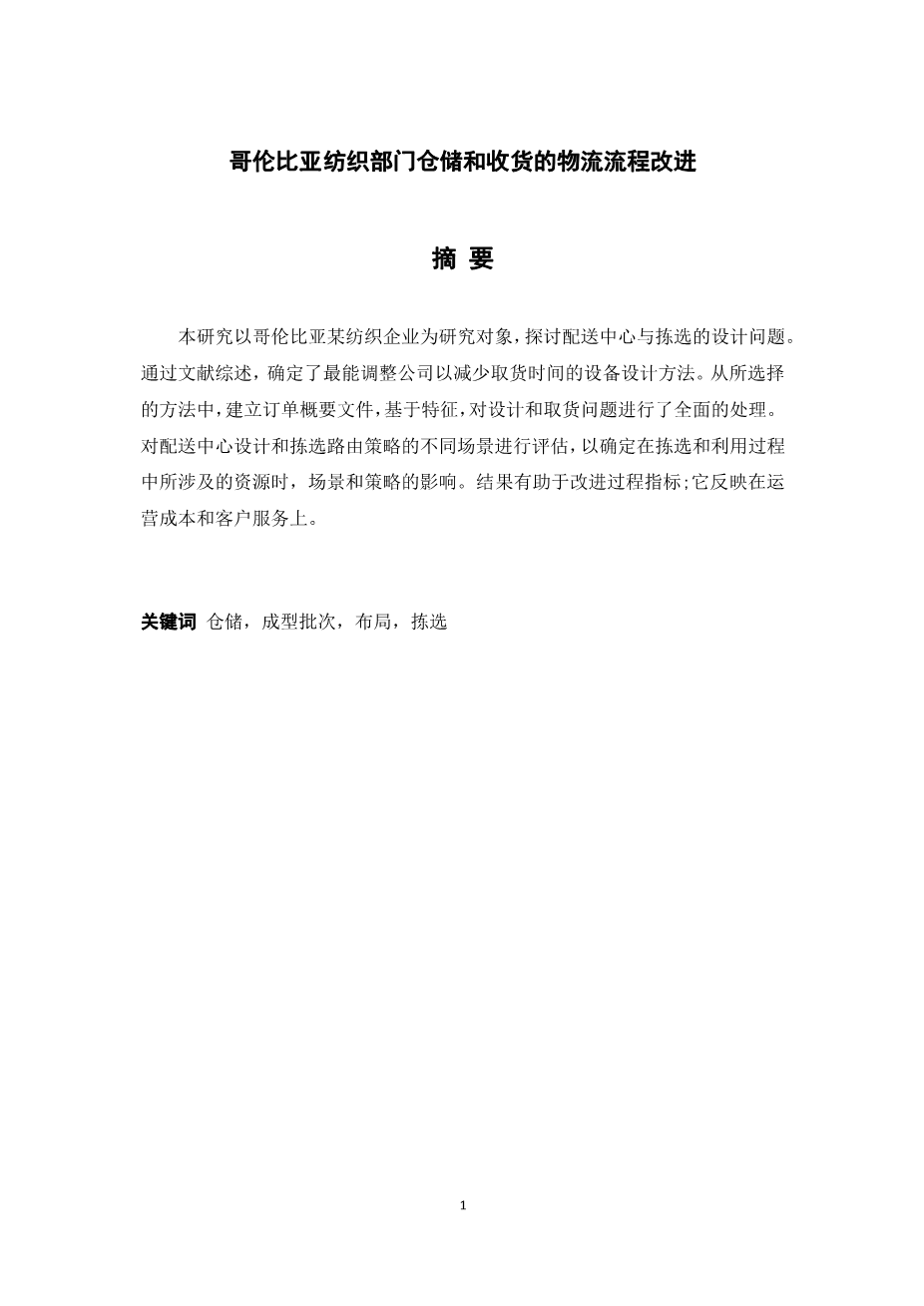 哥伦比亚纺织部门仓储和收货的物流流程改进外文翻译资料